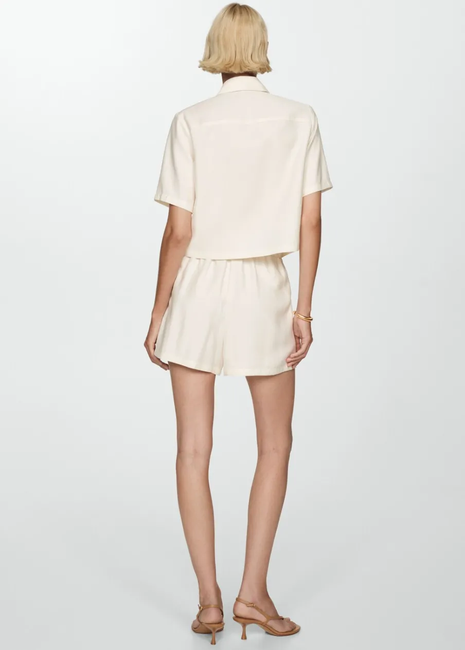 OpisLejąca tkanina. Model prosty. Koszulowy kołnierz. Krótki rękaw. Dwie kieszenie z patką na piersi. Total look. K…