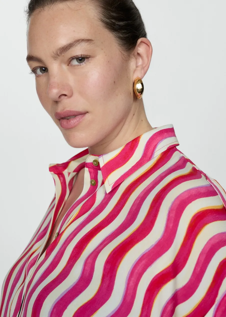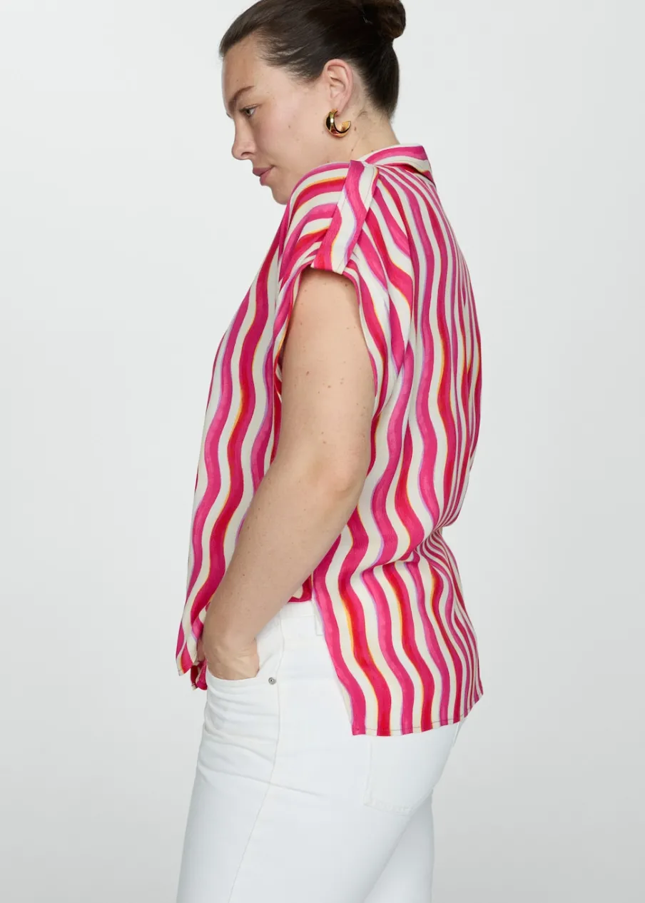 OpisLejąca tkanina. Model prosty. Koszulowy kołnierz. Krótki rękaw. Ozdobne guziki na rękawach. Dostępne w Plus Si…