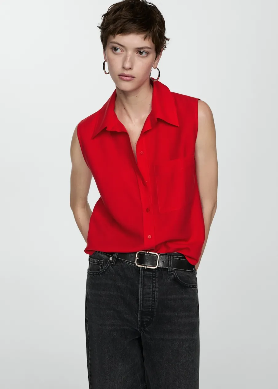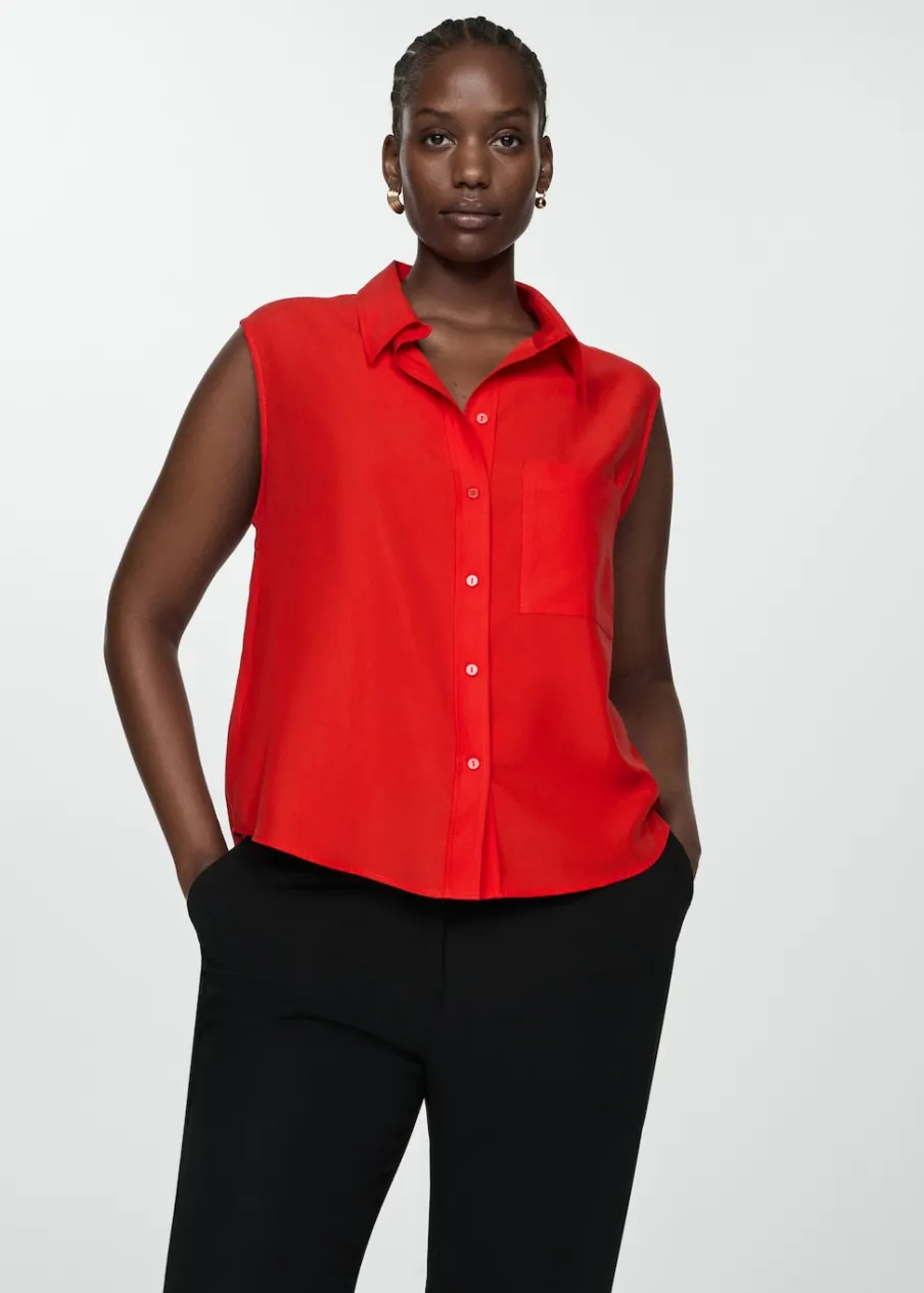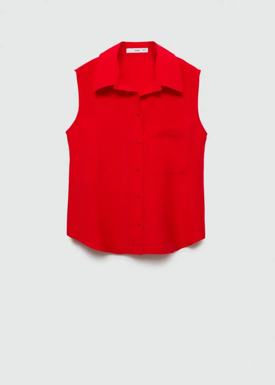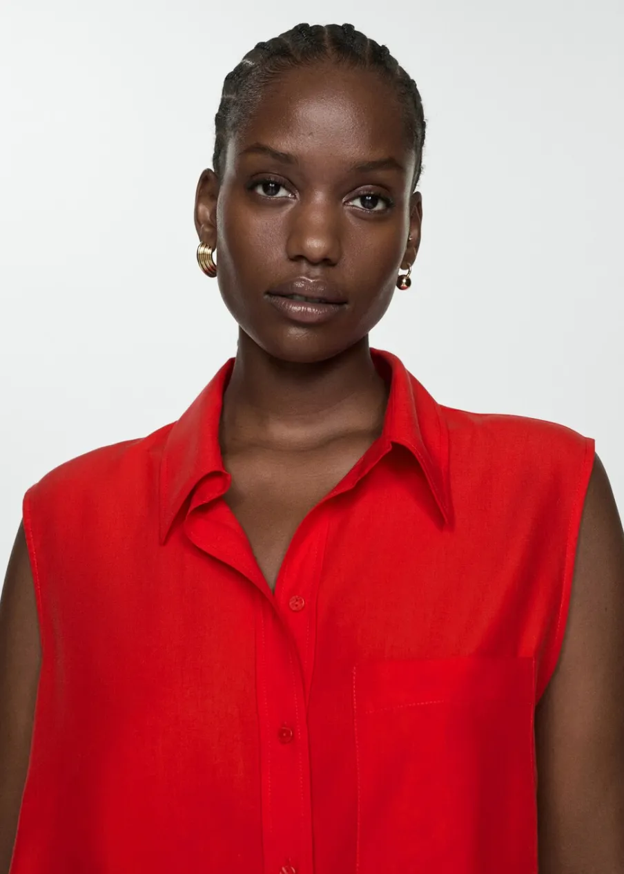 Tkanina lyocell. Model prosty. Koszulowy kołnierz. Bez rękawów. Kieszeń nakładana na piersi. Dostępne w Plus Size. Zapięcie na guziki z przodu.