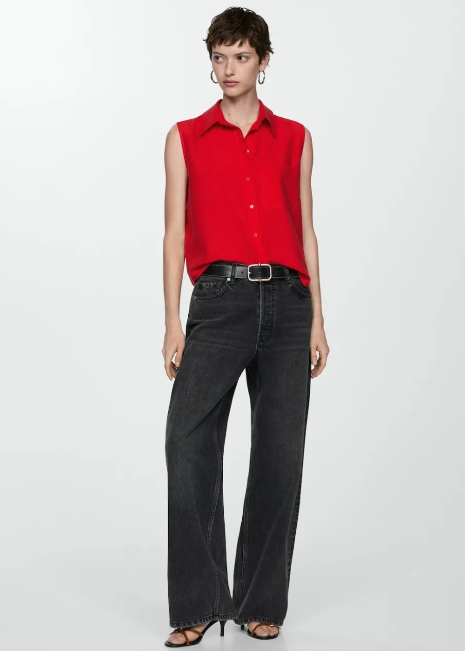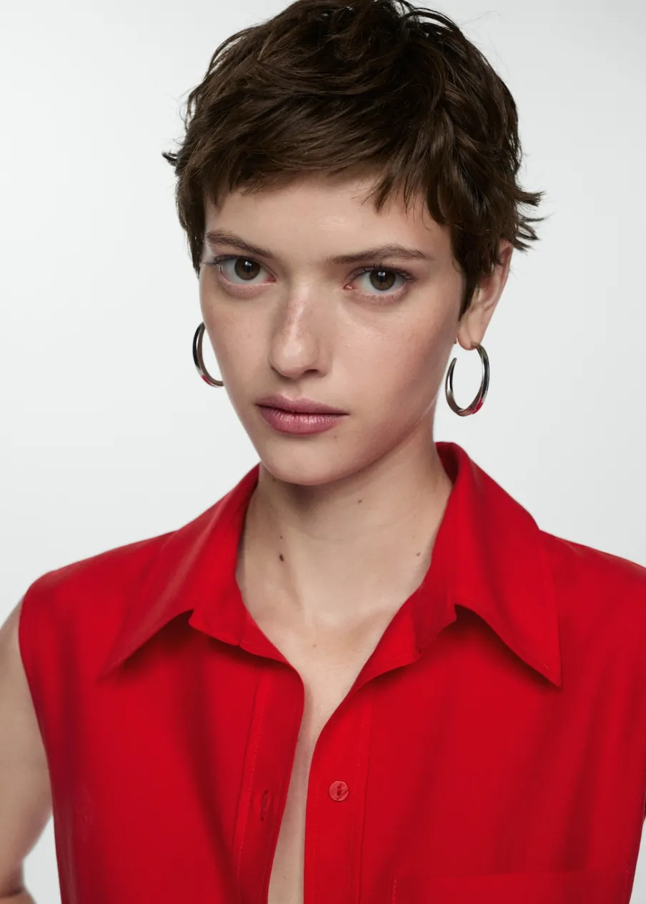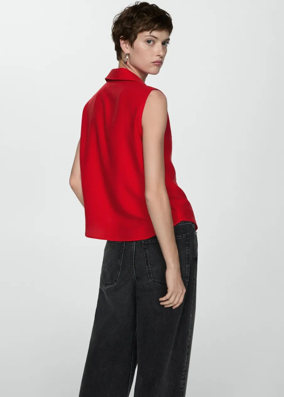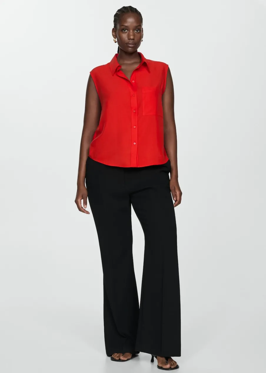 Tkanina lyocell. Model prosty. Koszulowy kołnierz. Bez rękawów. Kieszeń nakładana na piersi. Dostępne w Plus Size. Zapięcie na guziki z przodu.