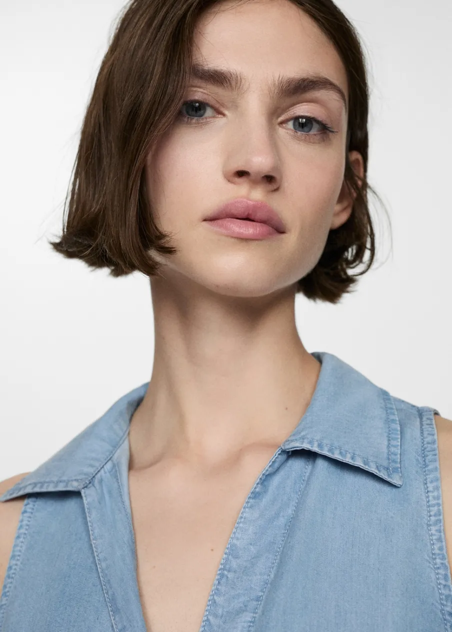 OpisTkanina lyocell. Kreszowana tkanina. Model prosty. Koszulowy kołnierz. Bez rękawów. Detal z rozcięciem. Total lo…