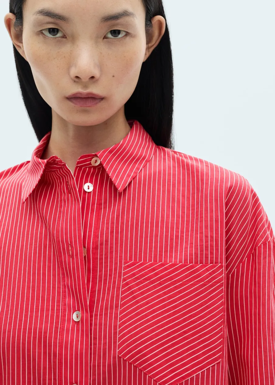 Tkanina mieszanka bawełny. Strukturalna tkanina. Model prosty. Model standardowy. Koszulowy kołnierz. Długi rękaw. Zapinane mankiety. Naszywana kieszeń z przodu. Zapięcie z przodu na guziki.