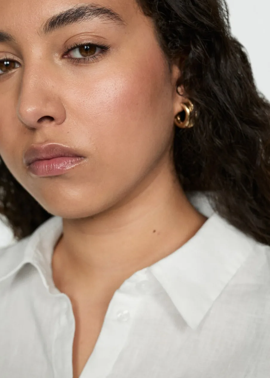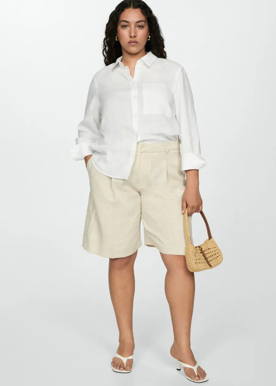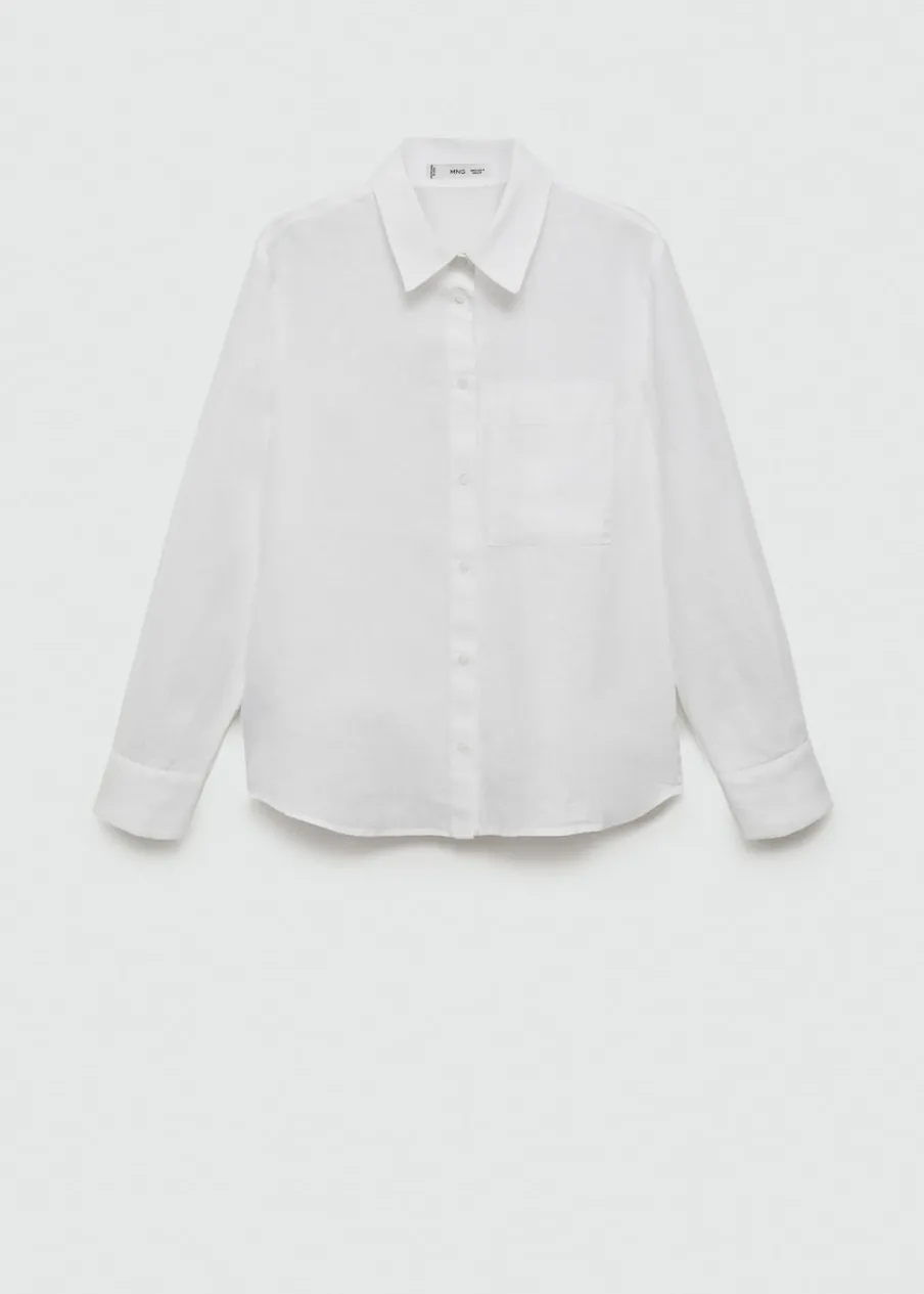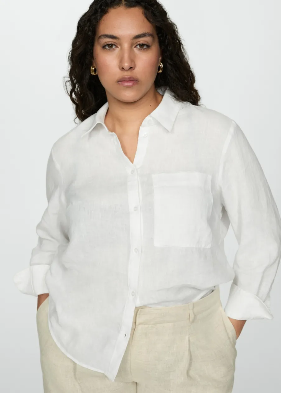 Tkanina z 100% lnu. Model prosty. Koszulowy kołnierz. Długi rękaw z guzikami na mankietach. Nakładana kieszeń przednia. Zapięcie z przodu na guziki. Dostępne w Plus Size. Zapięcie na guziki z przodu. 100% len. Kieszeń nakładana na piersi.