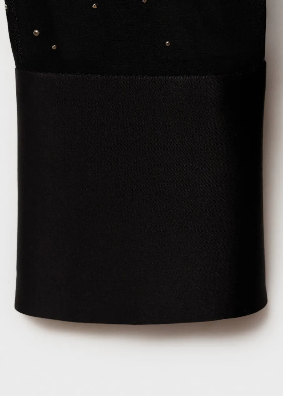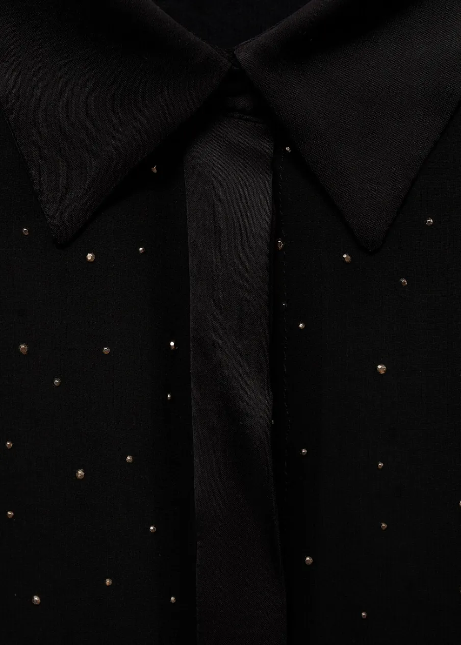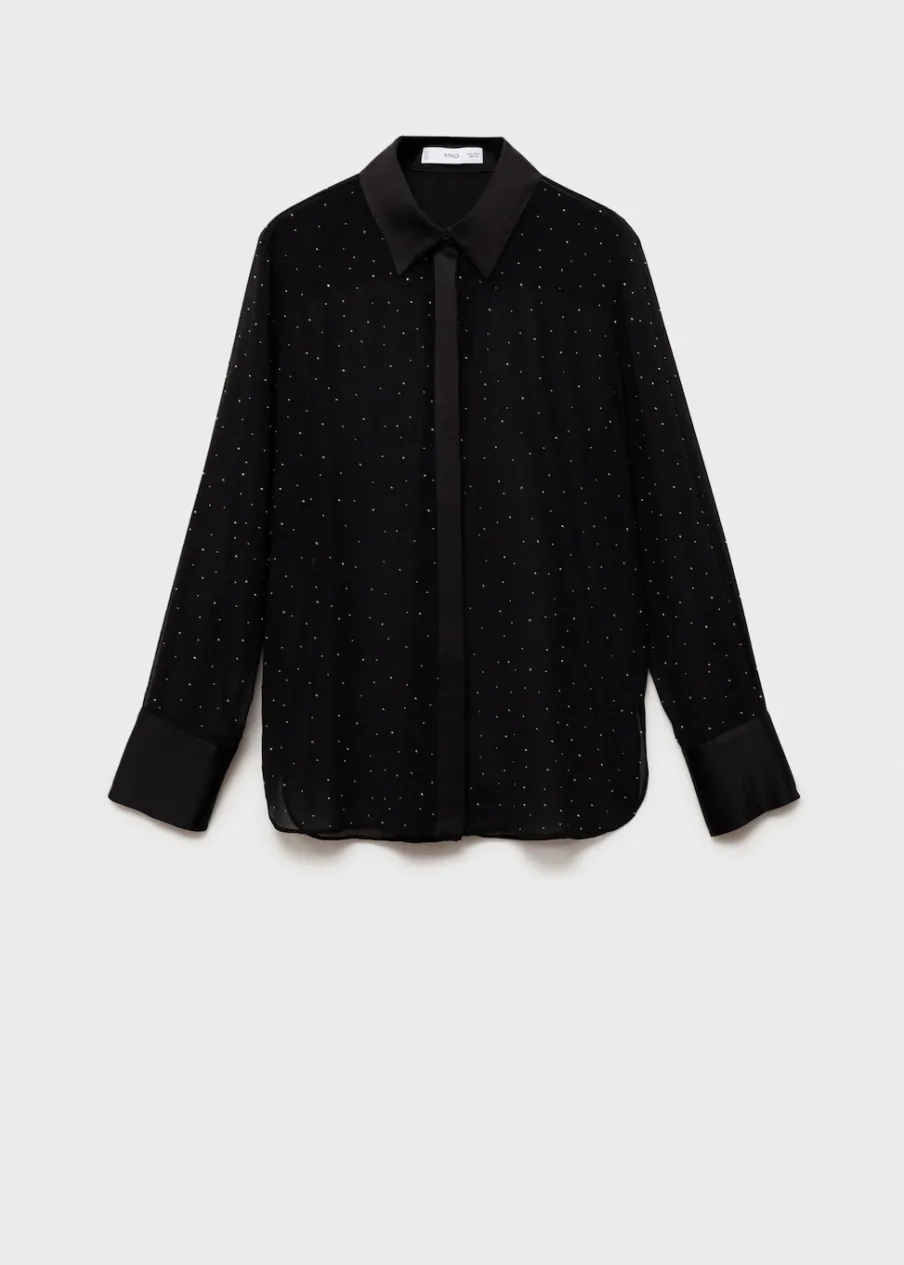 Koszulowy kołnierz. Kontrastowe mankiety. Kolekcja wizytowa. Modelka ma 175 cm wzrostu i nosi rozmiar S/36. Lejąca tkanina. Półprzezroczysta tkanina. Model prosty. Kontrastowy kołnierz. Kryte zapięcie na guziki z przodu.