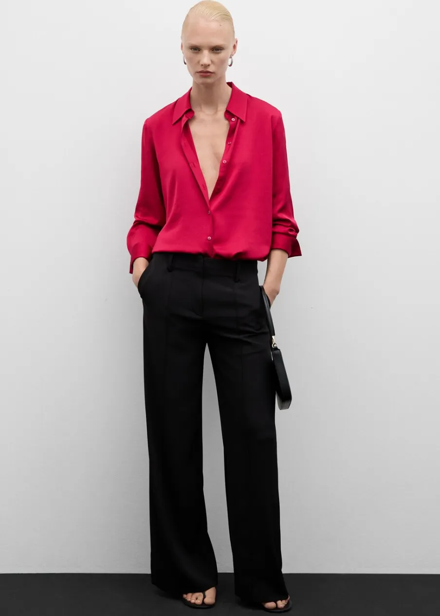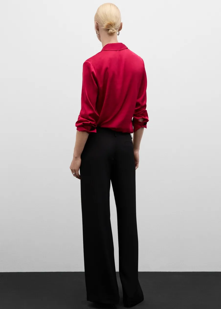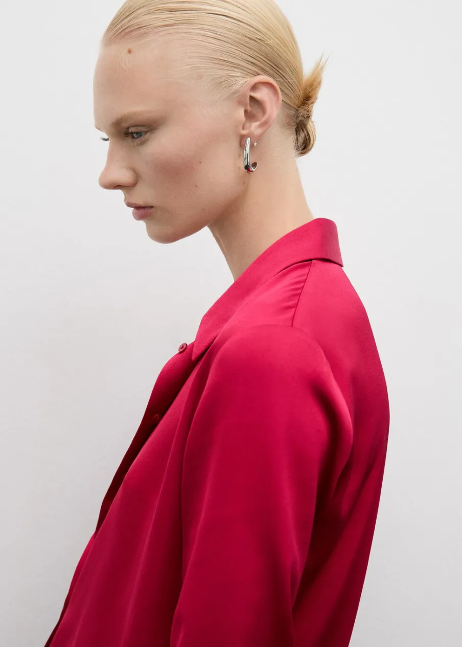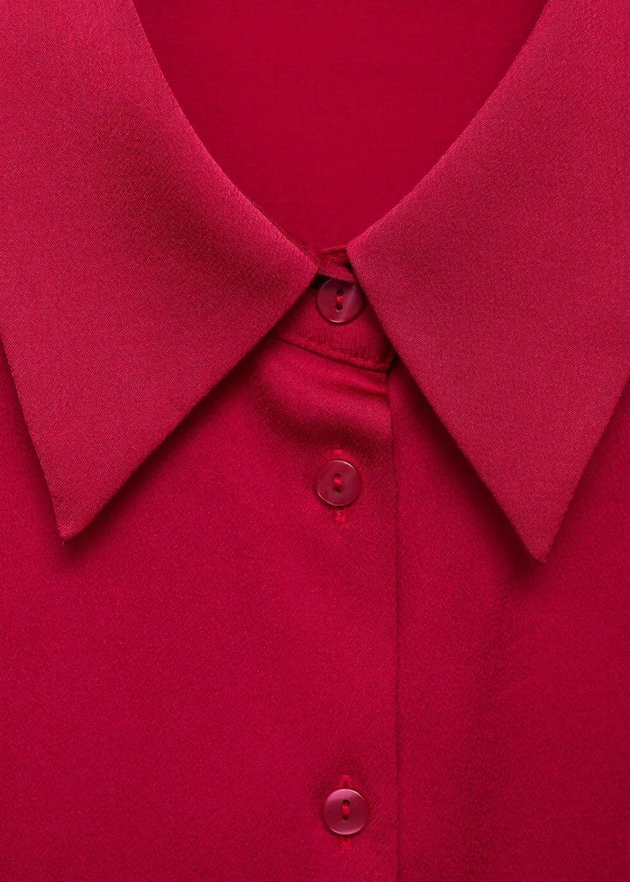 Lejąca tkanina. Teksturowana tkanina. Satynowe wykończenie. Model prosty. Długi rękaw z guzikami na mankietach. Zapięcie z przodu na guziki. Dostępne w Plus Size. Klasyczny kołnierzyk.