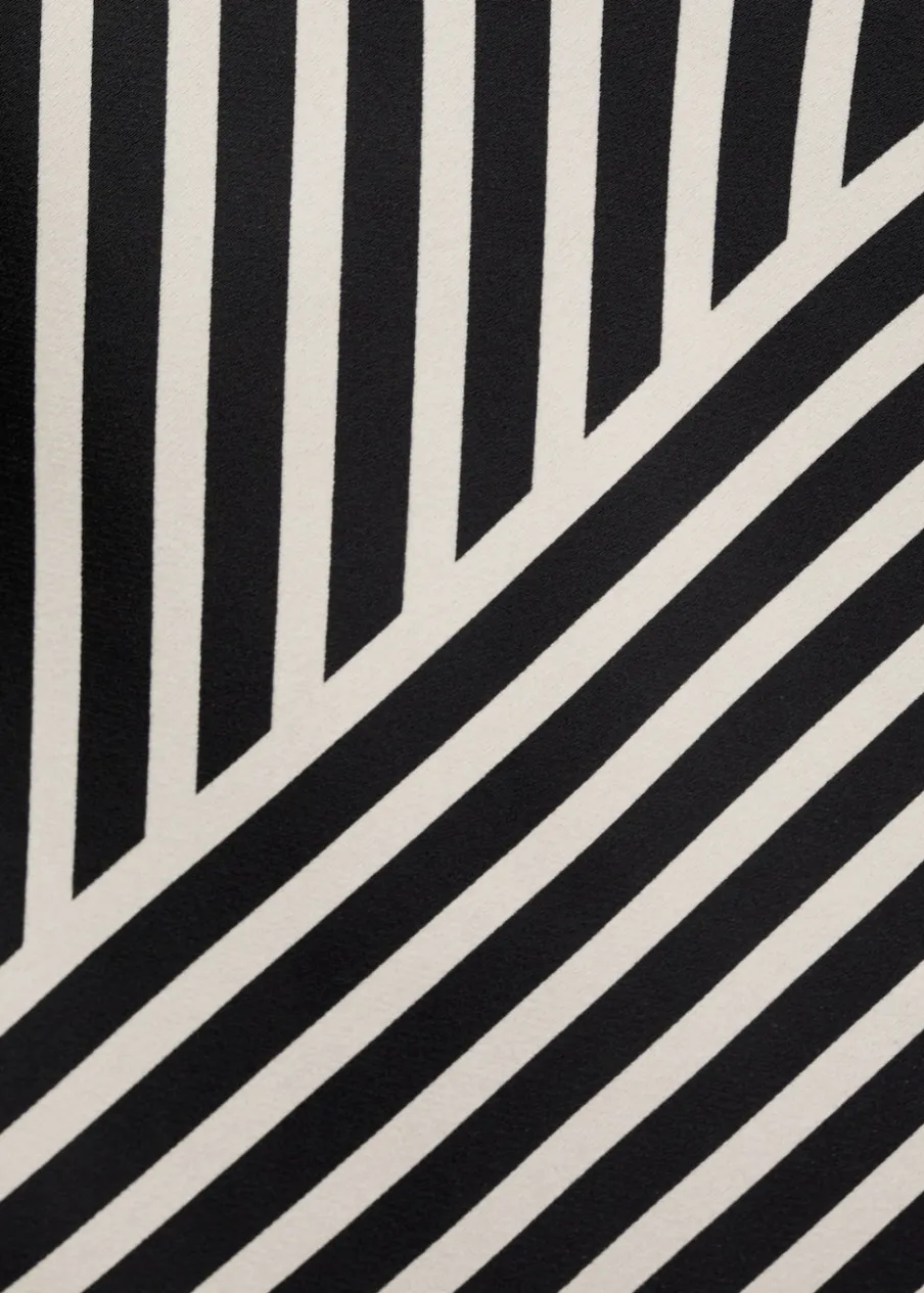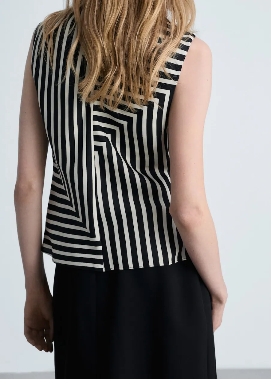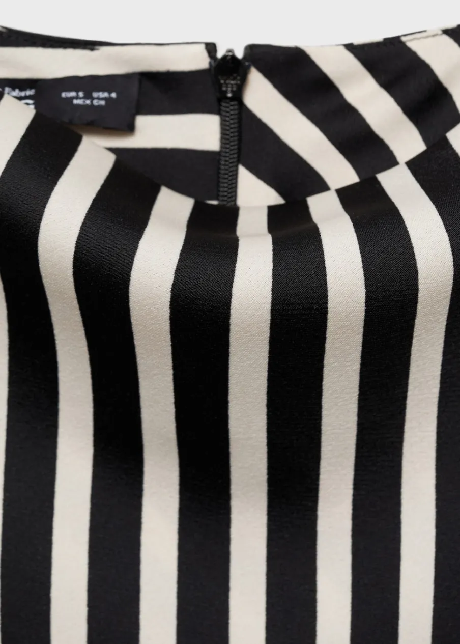 OpisLejąca tkanina. Satynowa tkanina. Model prosty. Wzór w pasy. Półgolf. Bez rękawów. Zapięcie z tyłu na suwak….