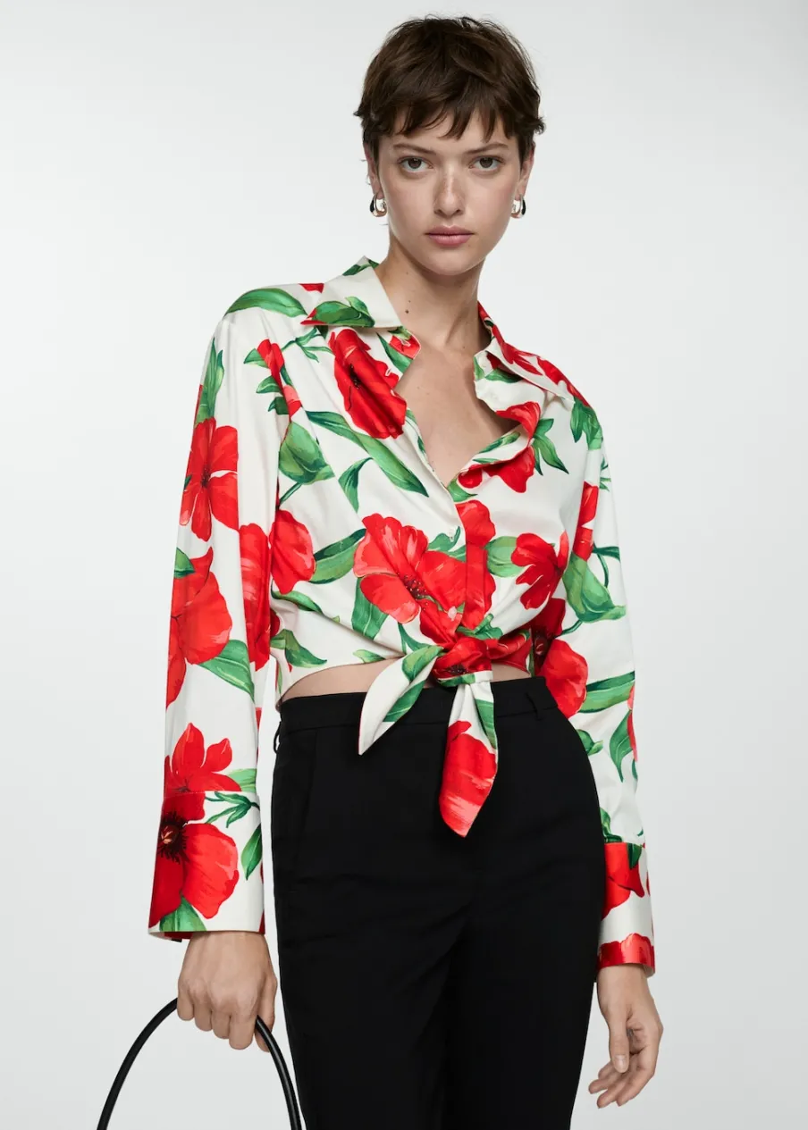 Tkanina mieszanka bawełny. Deseń crop. Model prosty. Koszulowy kołnierz. Długi rękaw z guzikami na mankietach. Wiązane zapięcie. Dostępne w Plus Size. Zapięcie na guziki z przodu. Nadruk.