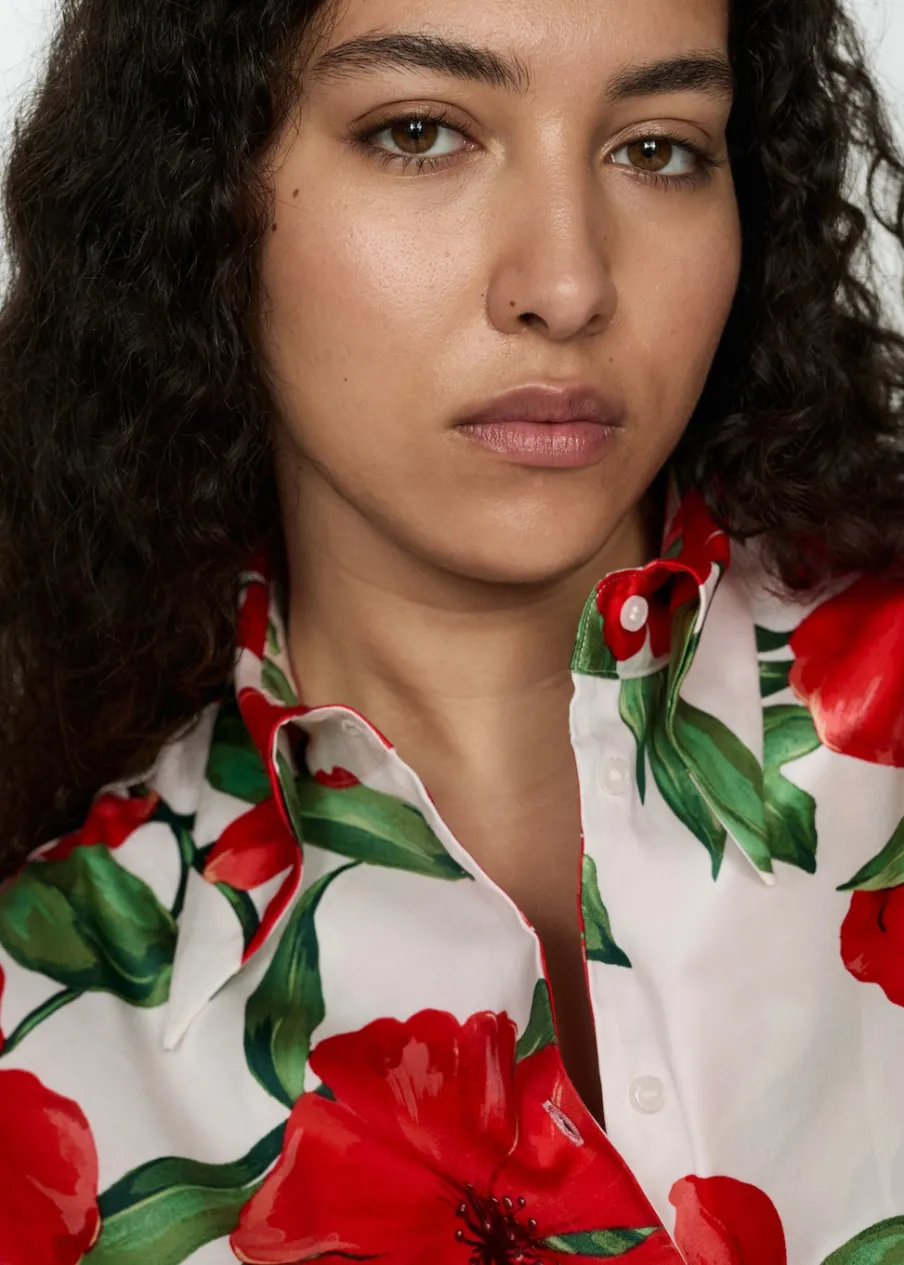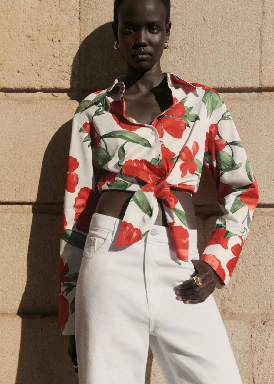 OpisTkanina mieszanka bawełny. Deseń crop. Model prosty. Koszulowy kołnierz. Długi rękaw z guzikami na mankietach. …