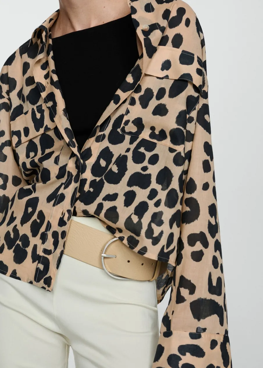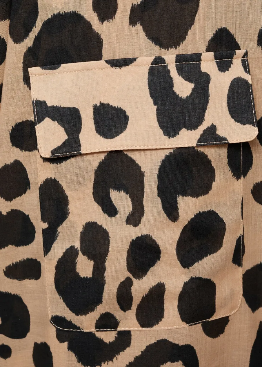 OpisModel prosty. Zwierzęcy wzór. Koszulowy kołnierz. Długi rękaw z guzikami na mankietach. Dwie kieszenie nakłada…