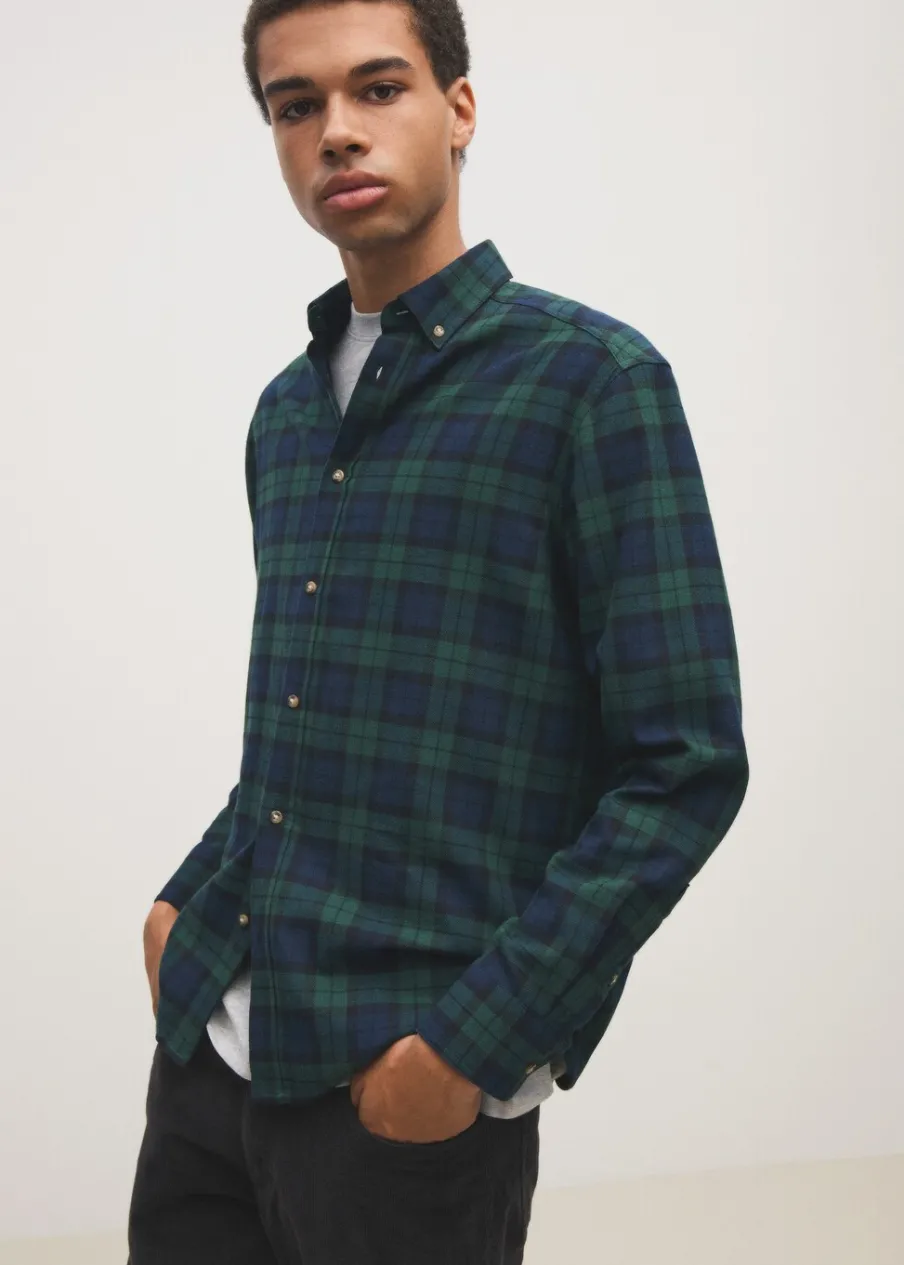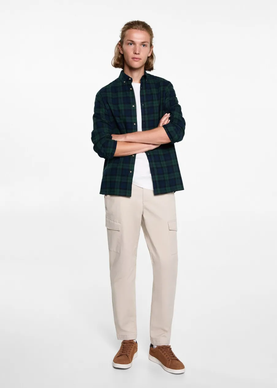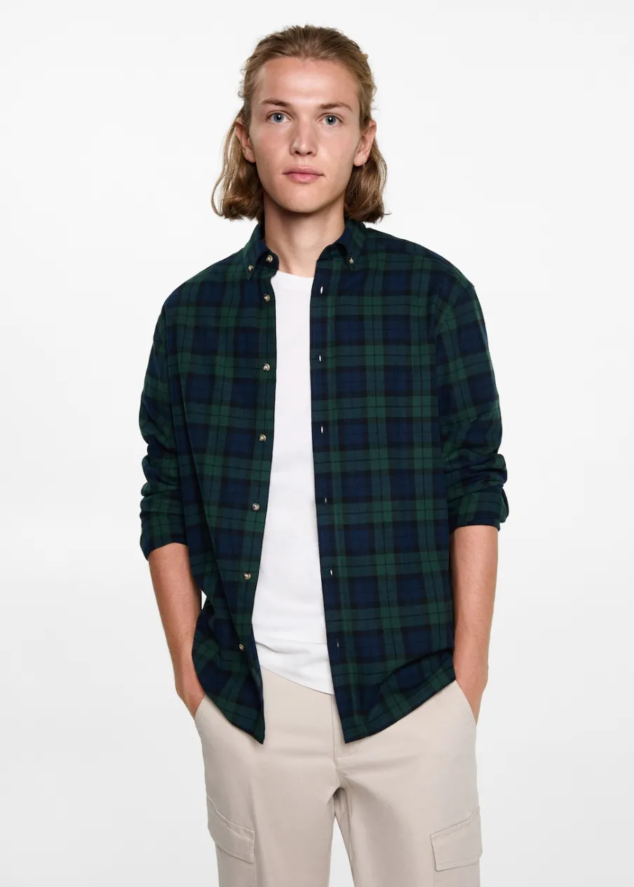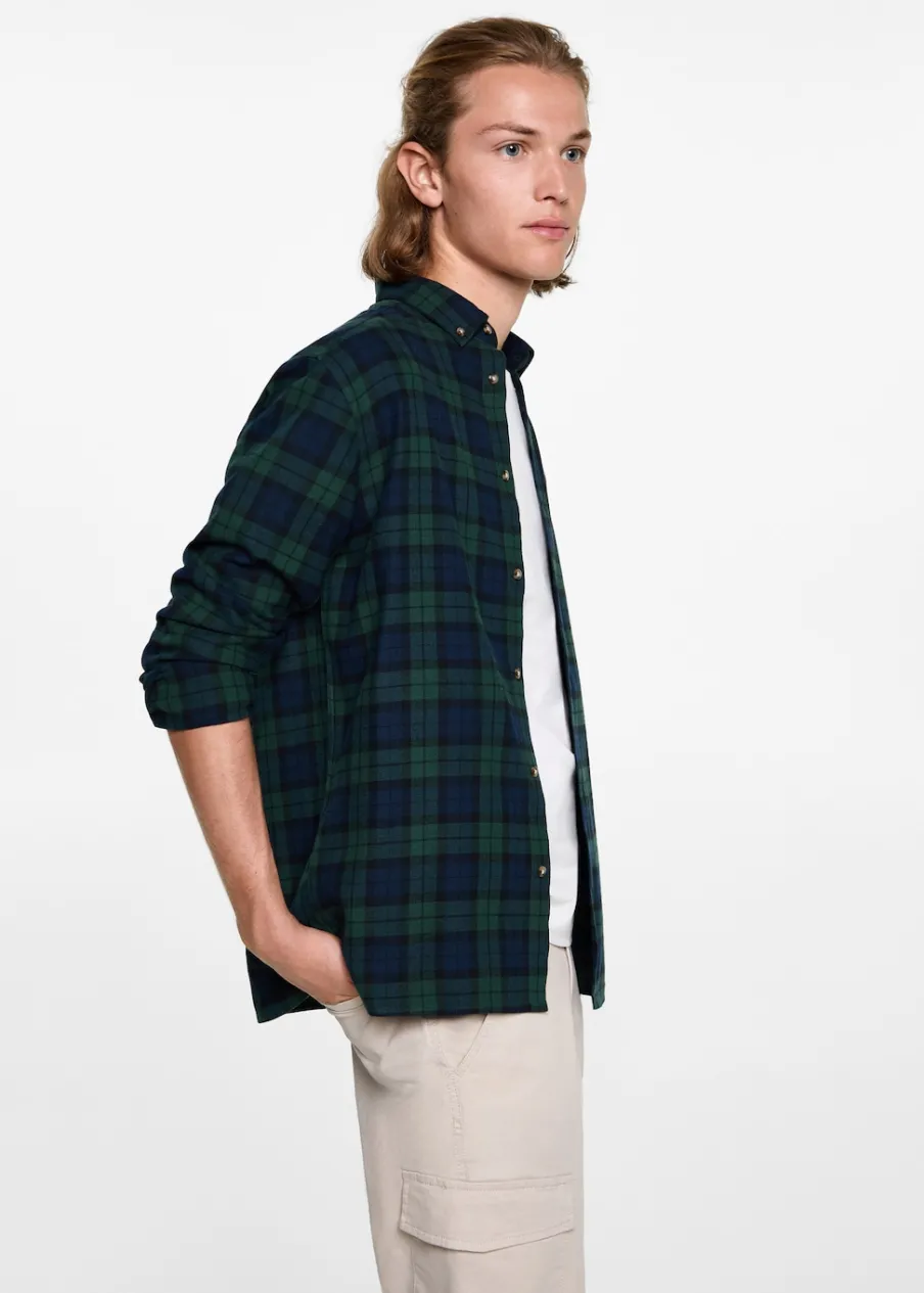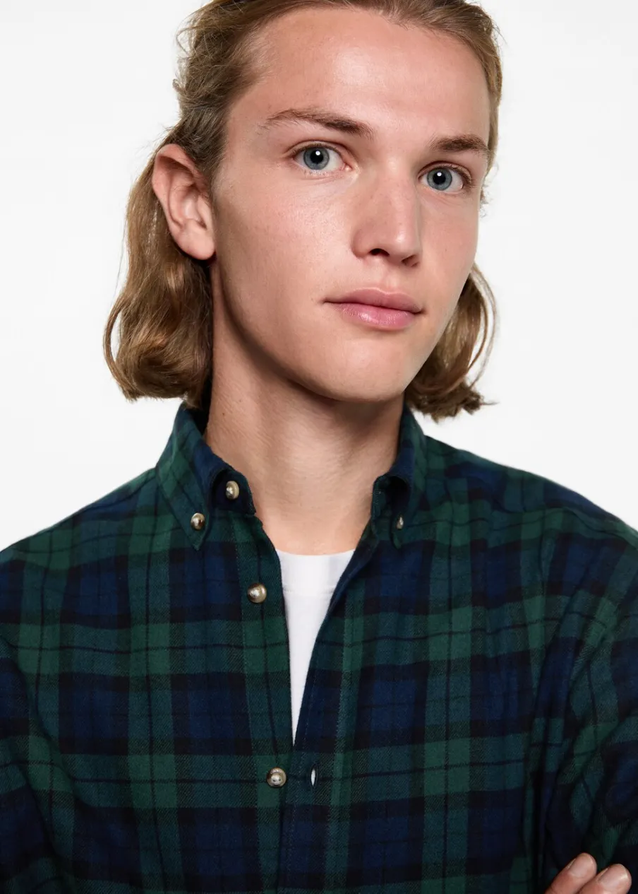 OpisBawełna 100%. Deseń w kratę. Koszulowy kołnierz. Długi rękaw z zapięciem na guziki. Zapięcie na guziki. Mode…