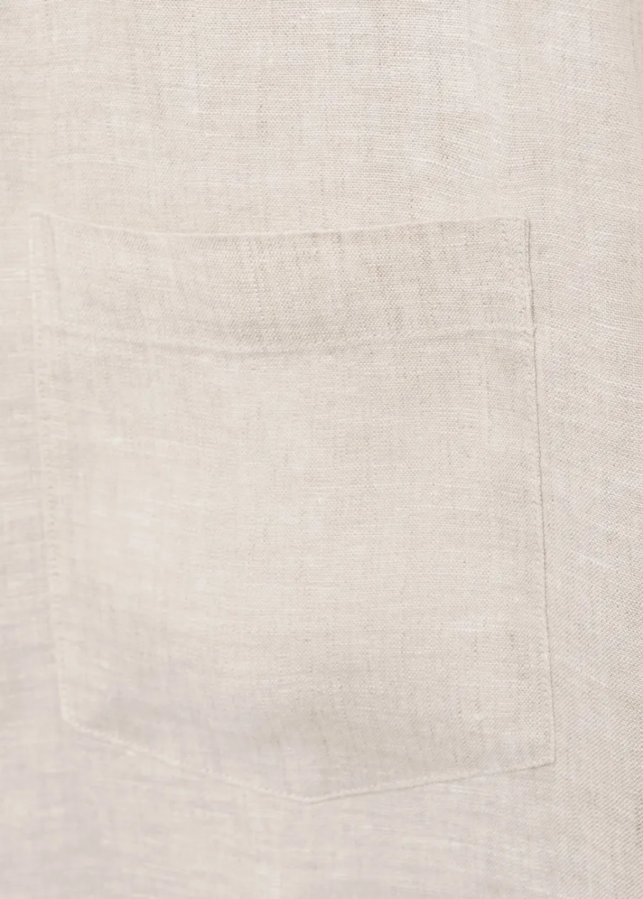 OpisTkanina z 100% lnu. Cienka tkanina. Zapięcie z przodu na guziki. Długi rękaw z guzikami na mankietach. Kieszeń n…
