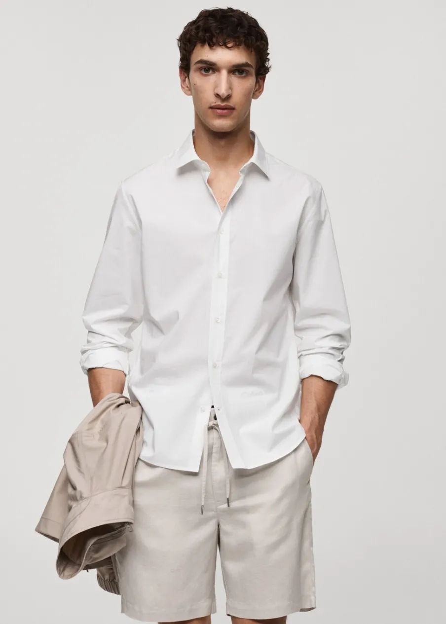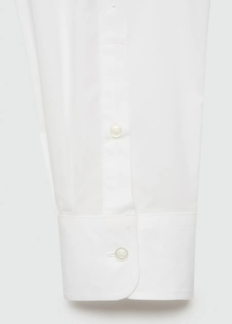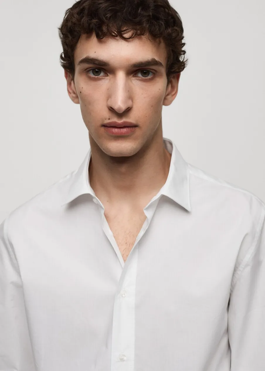 Krój regular. Koszulowy kołnierz. Zapięcie z przodu na guziki. Długi rękaw z guzikami na mankietach. Model ma 187 cm wzrostu i nosi rozmiar M. Zaokrąglony dół. Tkanina z 100% bawełny.