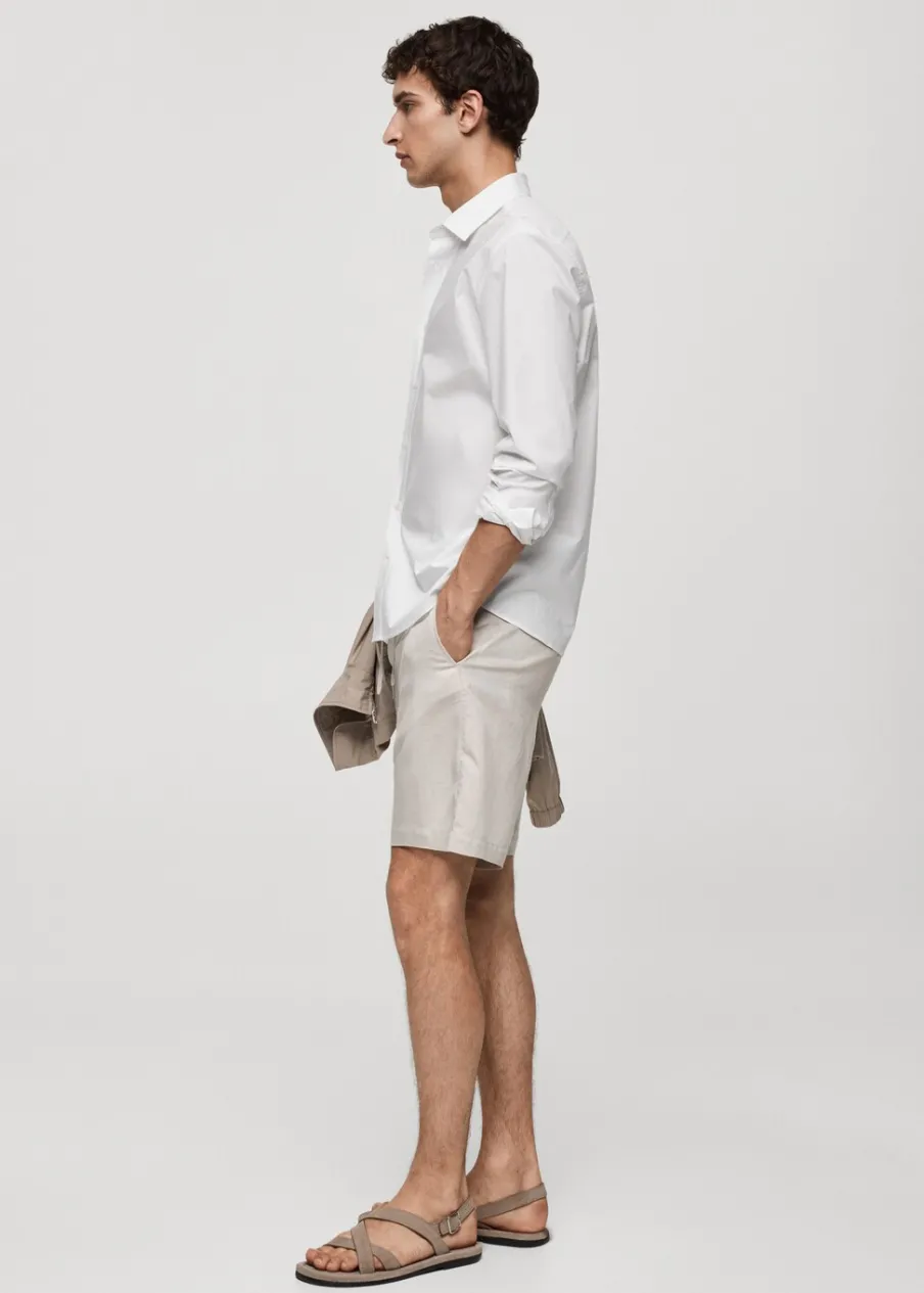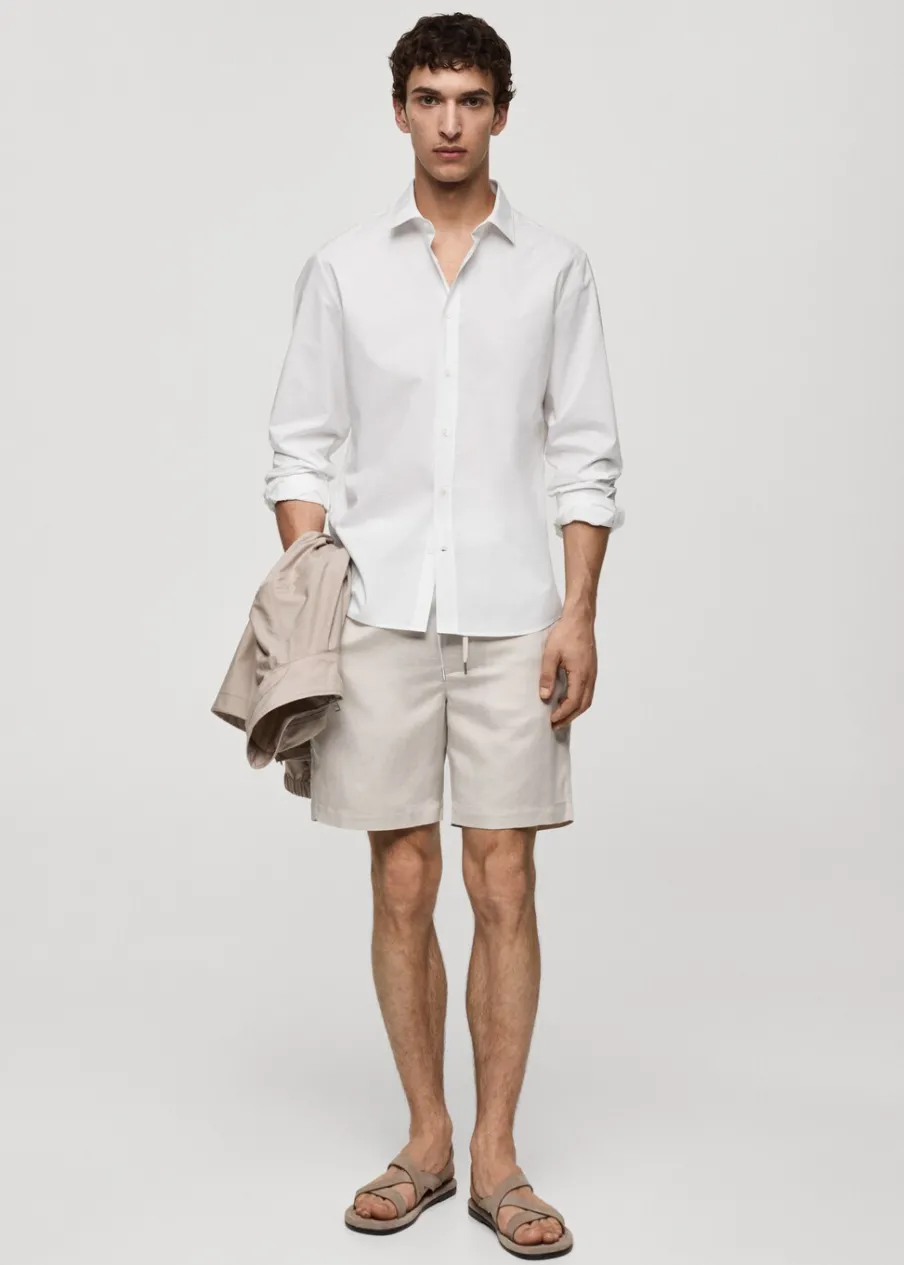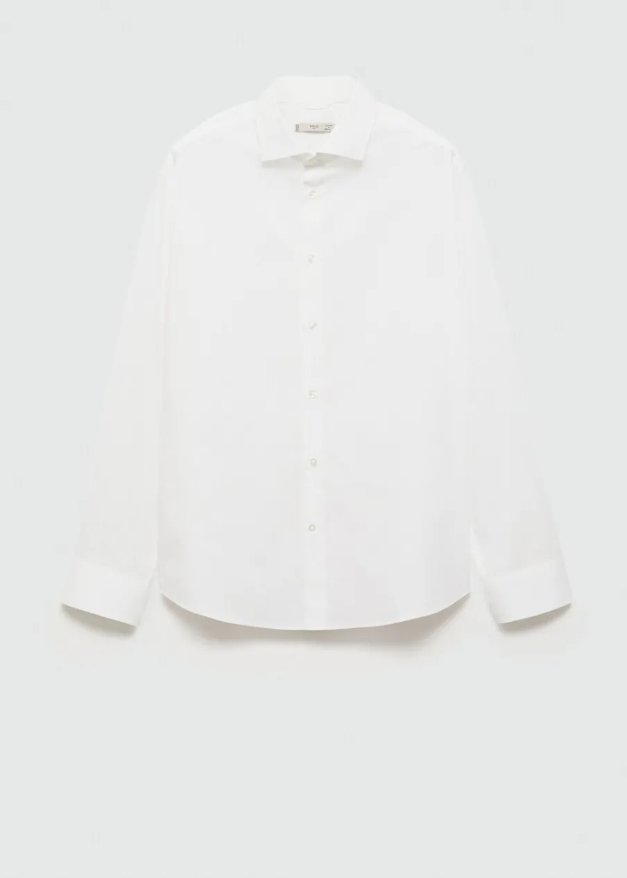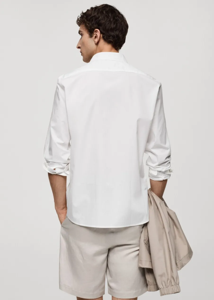 Krój regular. Koszulowy kołnierz. Zapięcie z przodu na guziki. Długi rękaw z guzikami na mankietach. Model ma 187 cm wzrostu i nosi rozmiar M. Zaokrąglony dół. Tkanina z 100% bawełny.