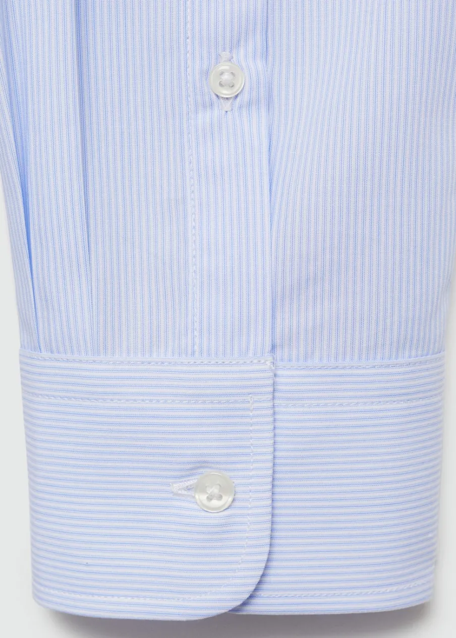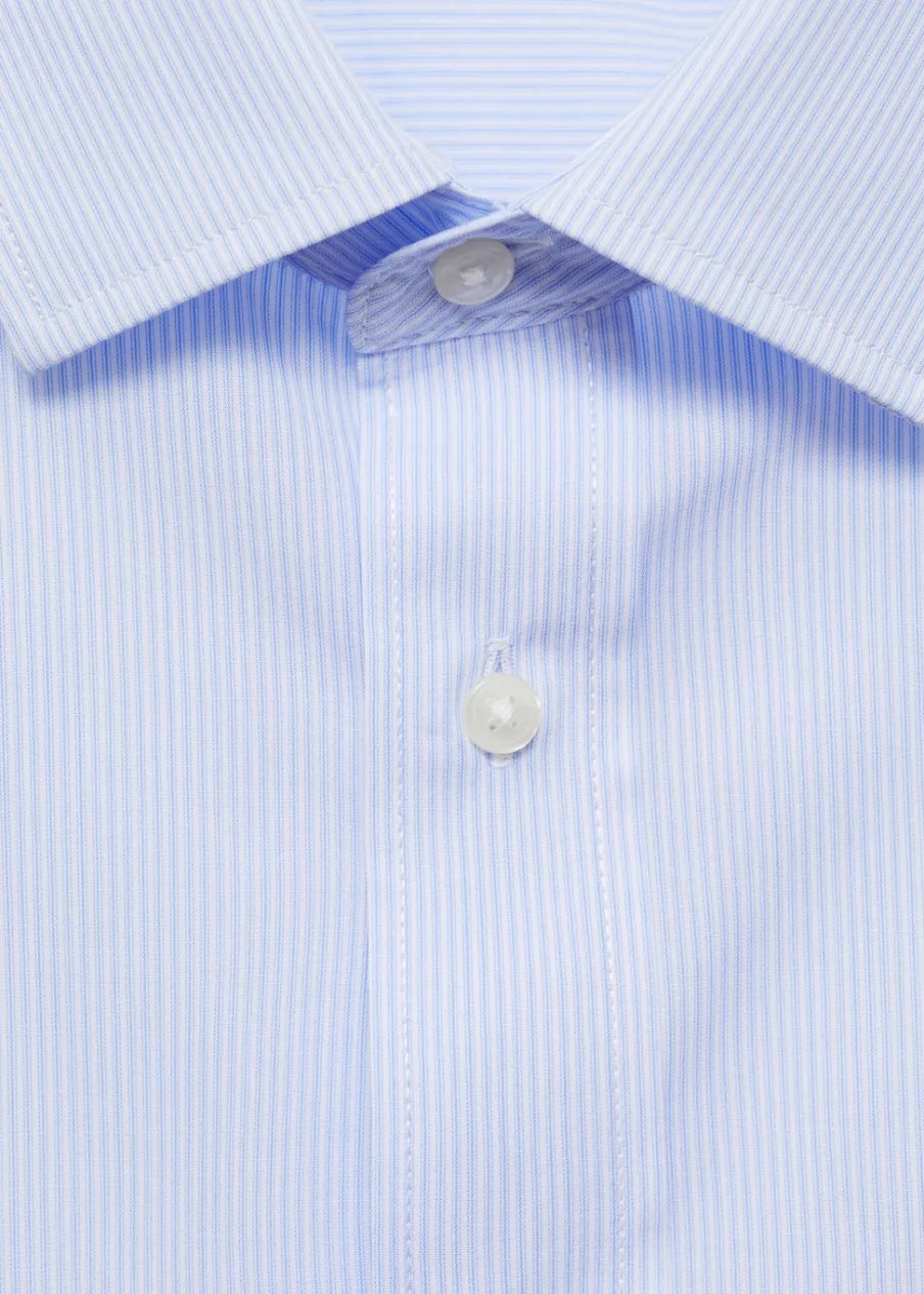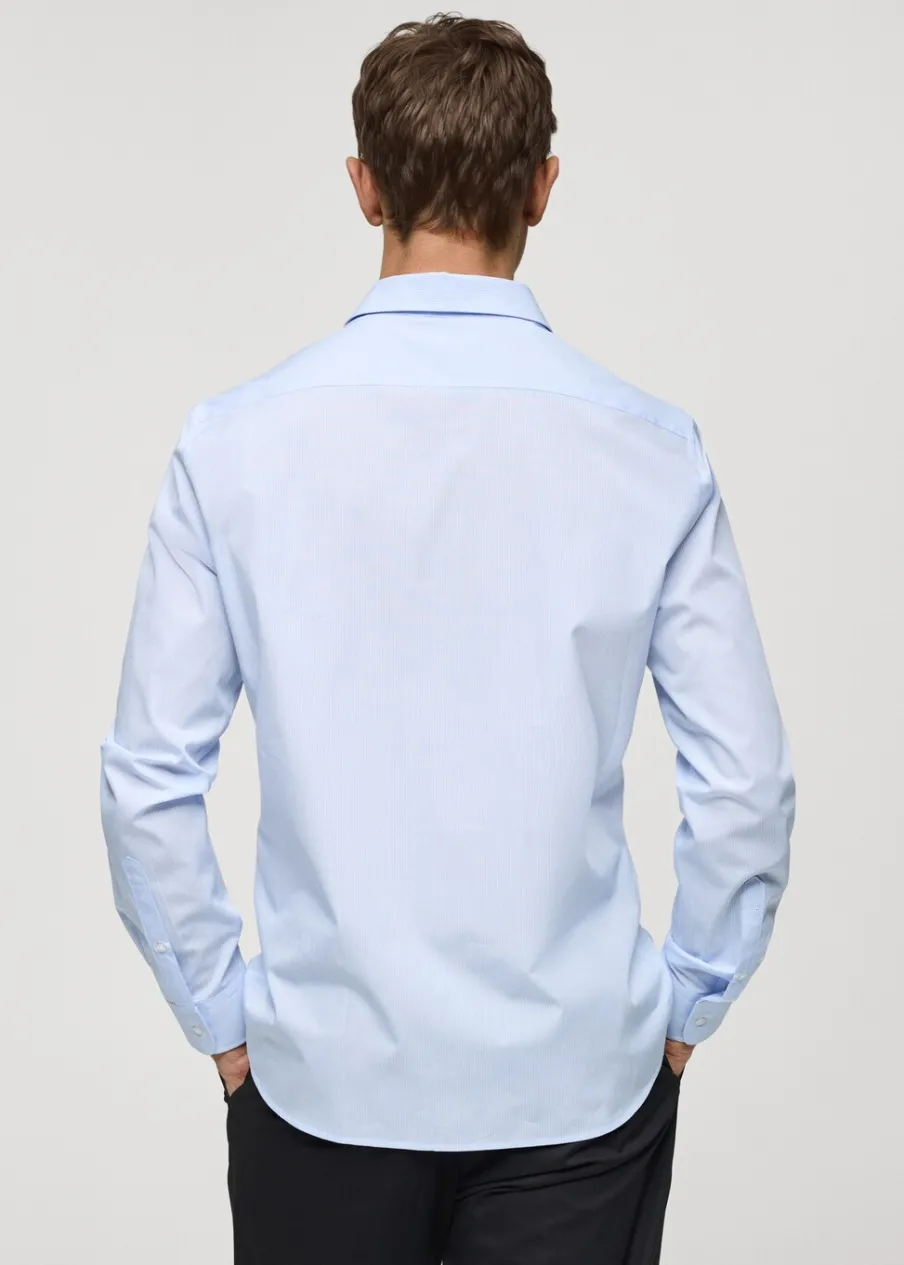 Krój regular. Koszulowy kołnierz. Zapięcie z przodu na guziki. Długi rękaw z guzikami na mankietach. Model ma 185 cm wzrostu i nosi rozmiar M. Tkanina z 100% bawełny. Zaokrąglony dół.