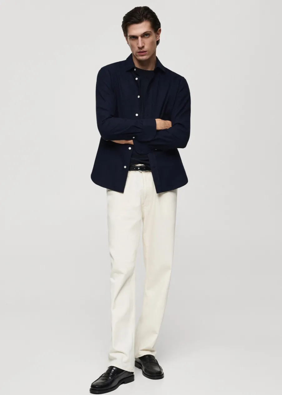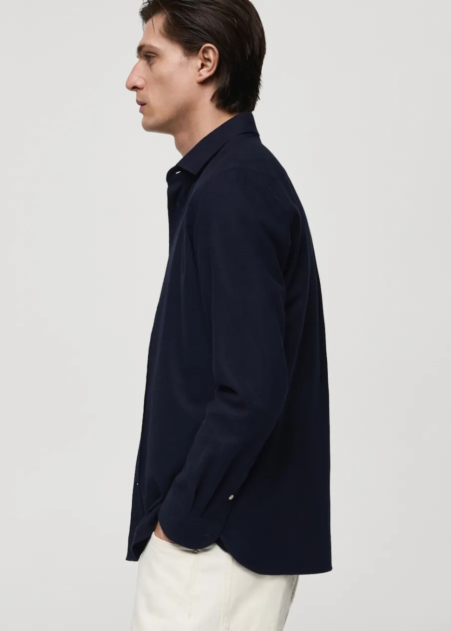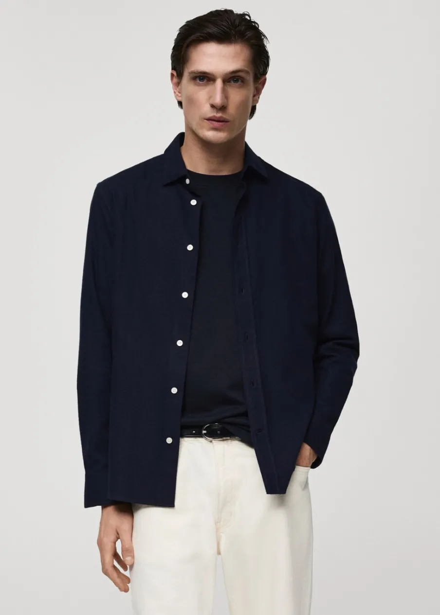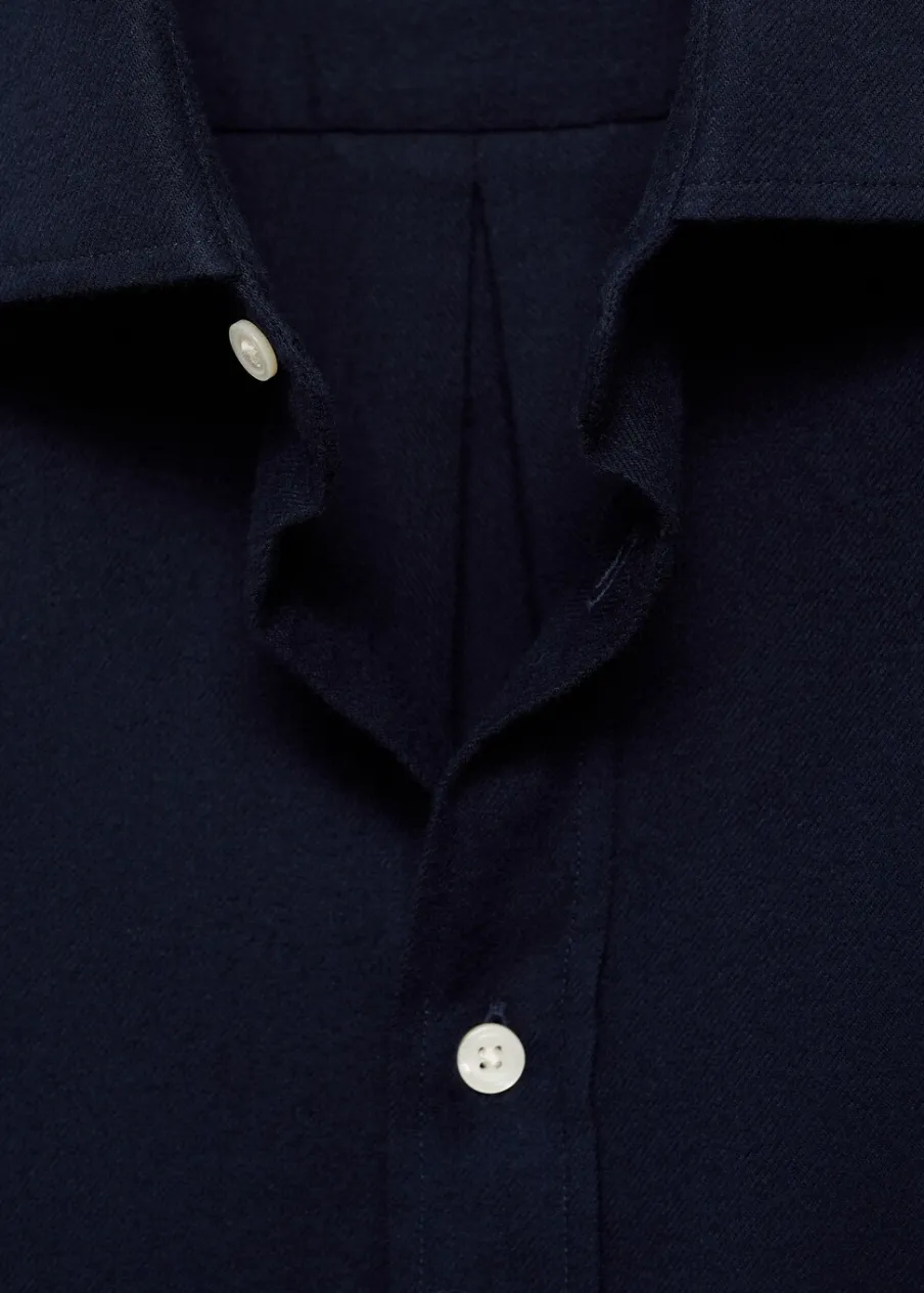 Długi rękaw z guzikami na mankietach. Zakładka z tyłu. Model ma 190 cm wzrostu i nosi rozmiar M. Tkanina flanelowa. Zapięcie na guziki z przodu. Klasyczny kołnierzyk. Zaokrąglony dół. Krój regular. Tkanina z 100% bawełny.