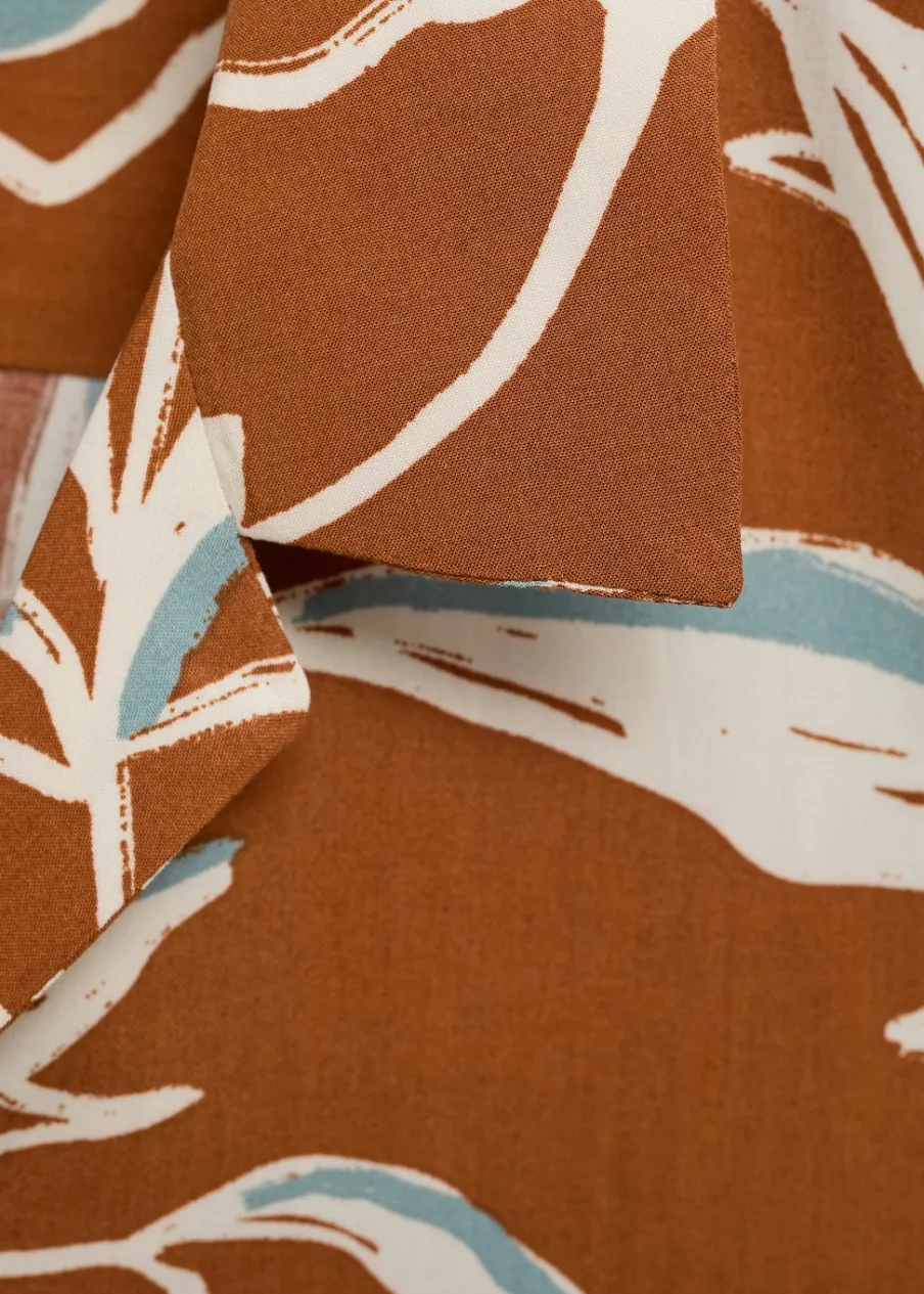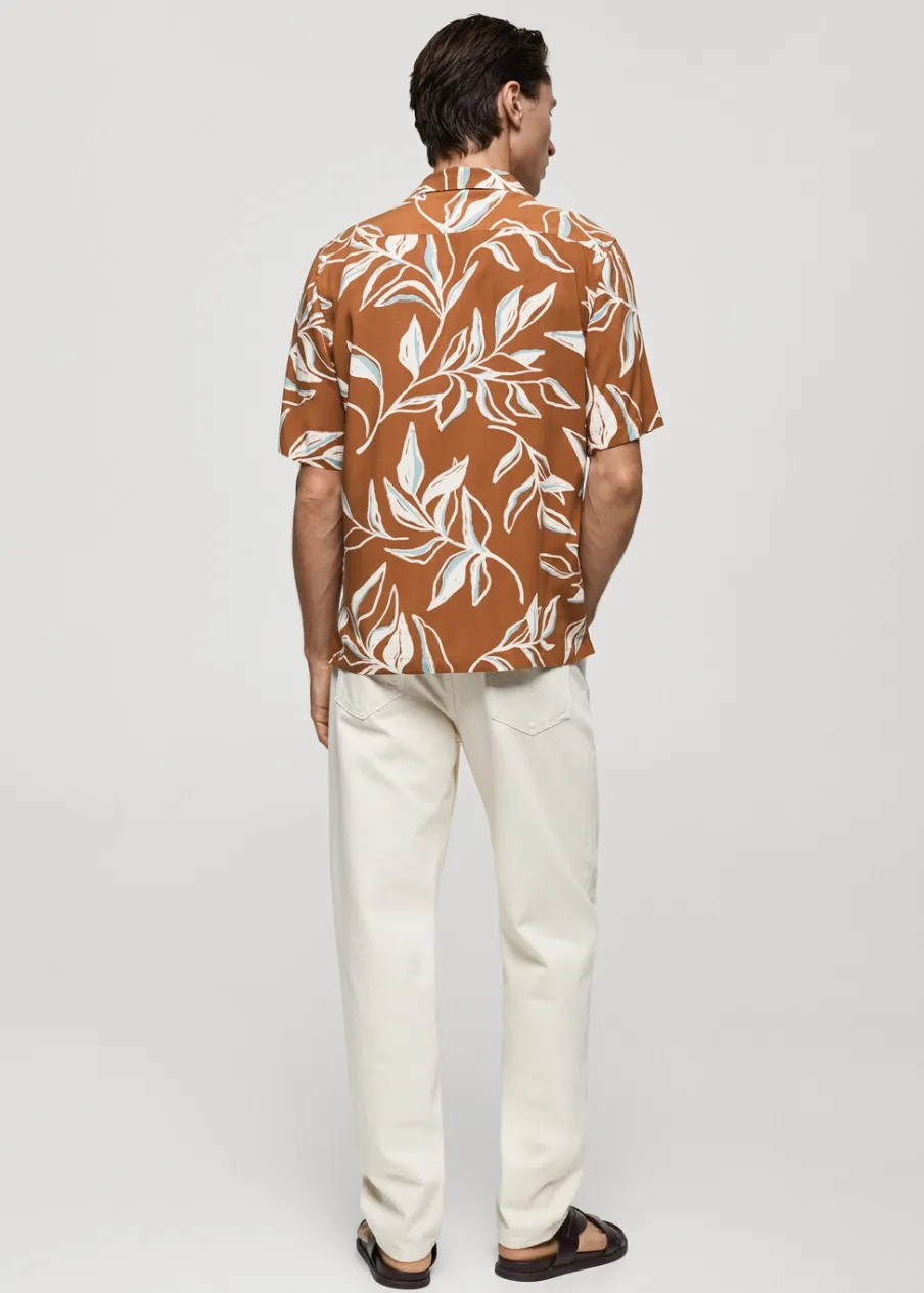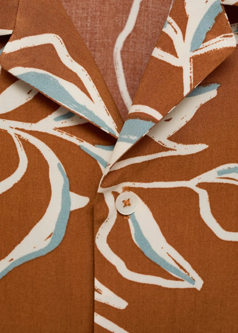 Krój regular. Kwiatowy wzór. Krótki rękaw. Kołnierzyk typu bowling. Zapięcie na guziki. Model ma 185 cm wzrostu i nosi rozmiar M.