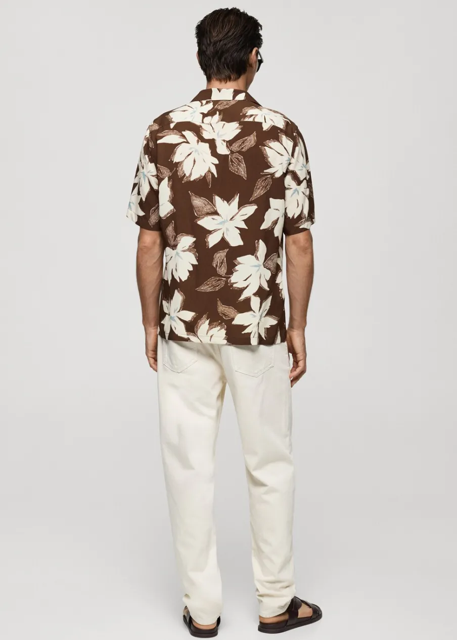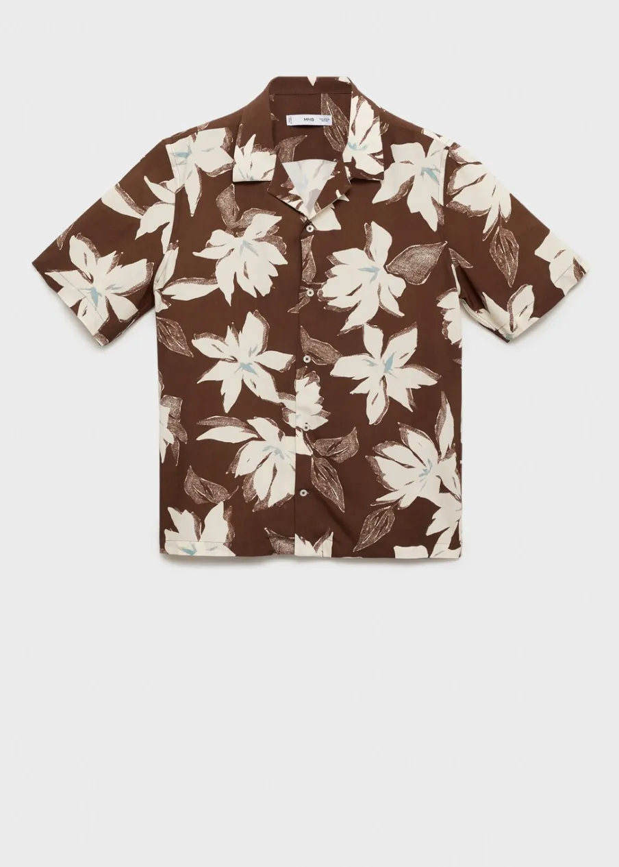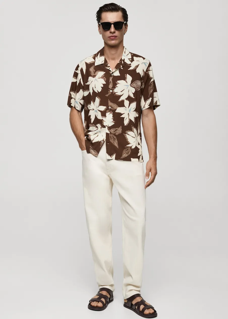 Krój regular. Kwiatowy wzór. Krótki rękaw. Kołnierzyk typu bowling. Zapięcie na guziki. Model ma 185 cm wzrostu i nosi rozmiar M.