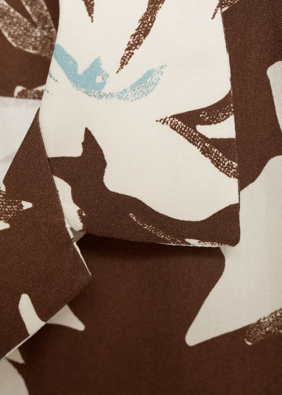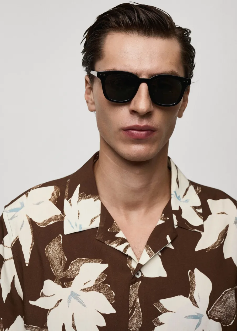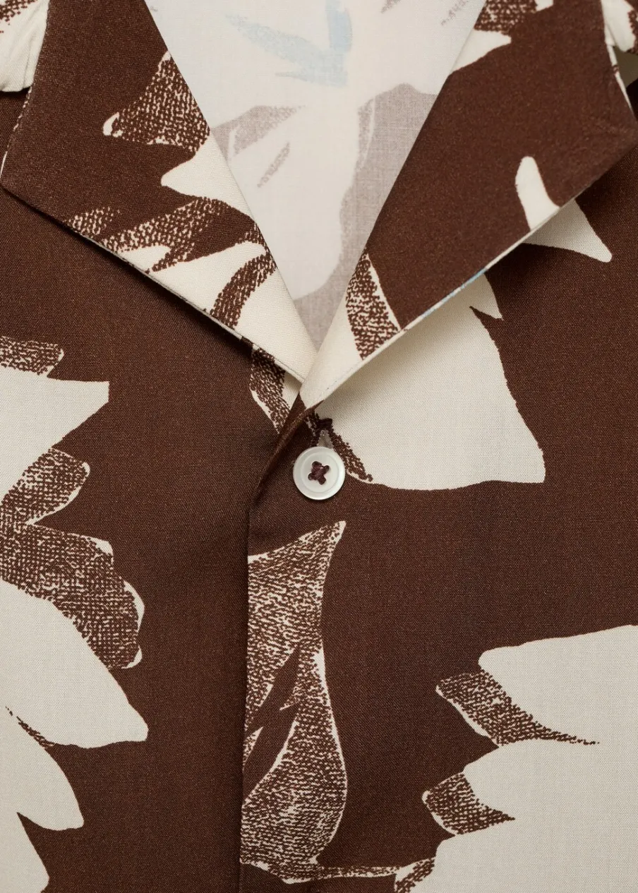 Krój regular. Kwiatowy wzór. Krótki rękaw. Kołnierzyk typu bowling. Zapięcie na guziki. Model ma 185 cm wzrostu i nosi rozmiar M.