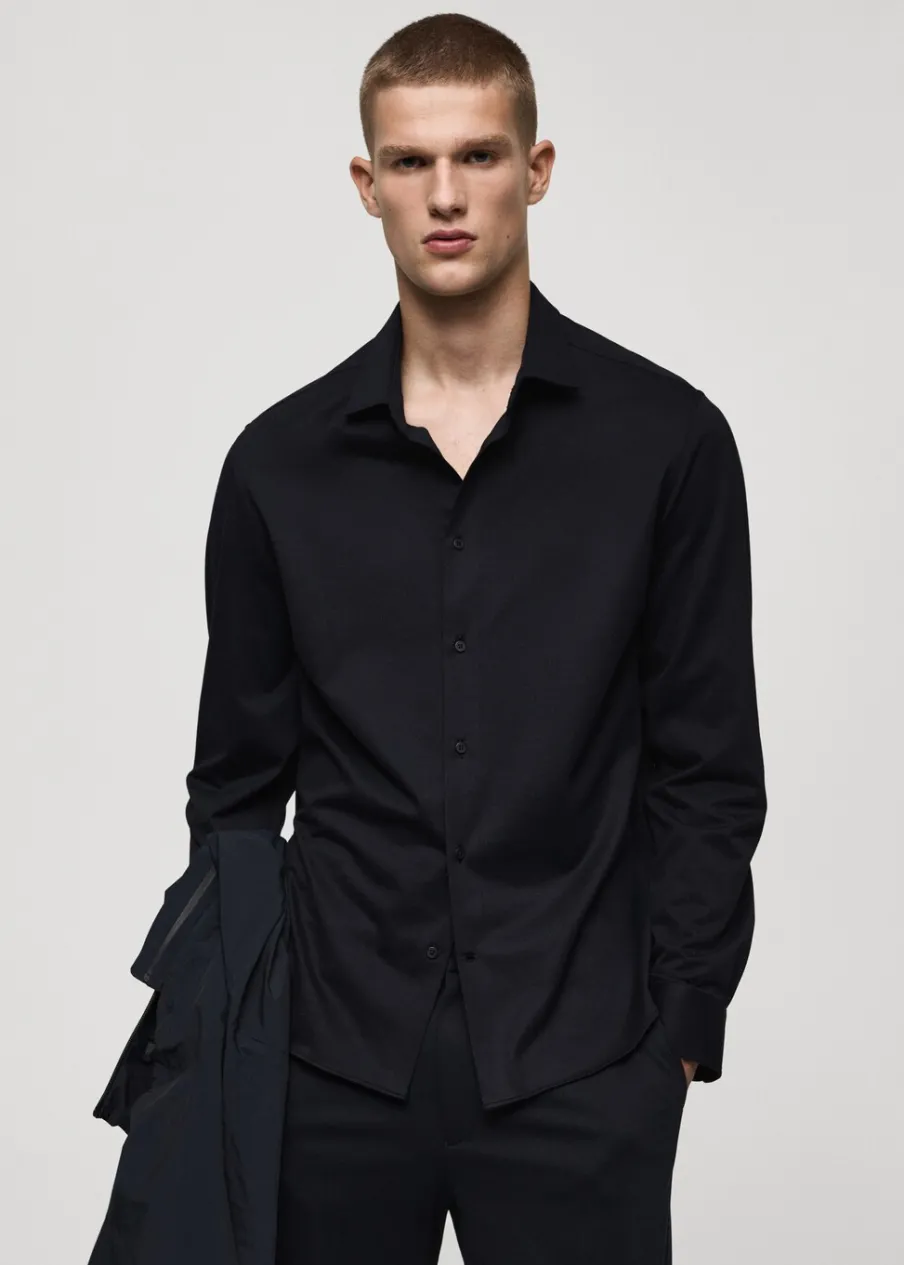 Kolekcja Performance. Wrinkle free: niegniotąca się tkanina. Comfort stretch: elastyczna tkanina dla większego komfortu. Tkanina Anti Odour: obróbka chemiczna nadaje tkaninie właściwości antybakteryjne i antyzapachowe. Krój regular. Tkanina z mikroteksturą. Koszulowy kołnierz. Model ma 190 cm wzrostu i nosi rozmiar M. Termoregulacyjna: ta tkanina zapewnia optymalną przepuszczalność powietrza, by utrzymać stałą temperaturę ciała. Zaokrąglony dół. Długi rękaw z zapięciem na guziki. Zapięcie na guziki z przodu. Komfort: to ubranie zapewnia pełną swobodę ruchu i odzyskuje swój pierwotny kształt.