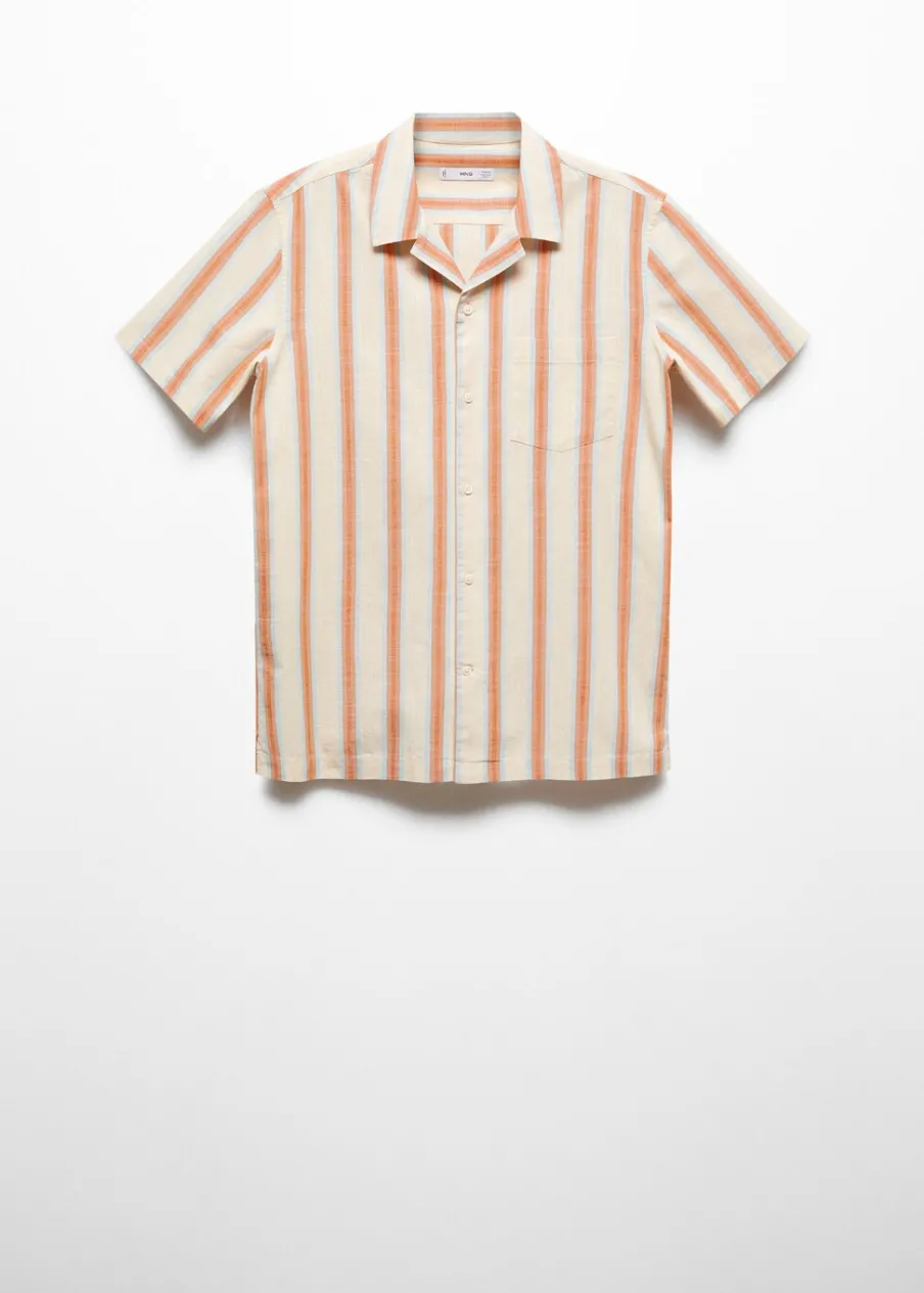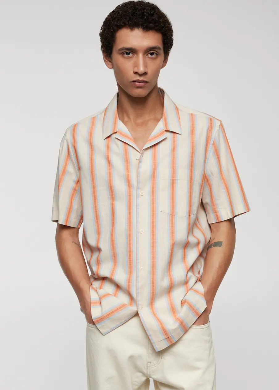 OpisKrój regular. Lejąca tkanina. Nadruk w pionowe paski. Kieszeń nakładana na piersi. Krótki rękaw. Prosty dół …