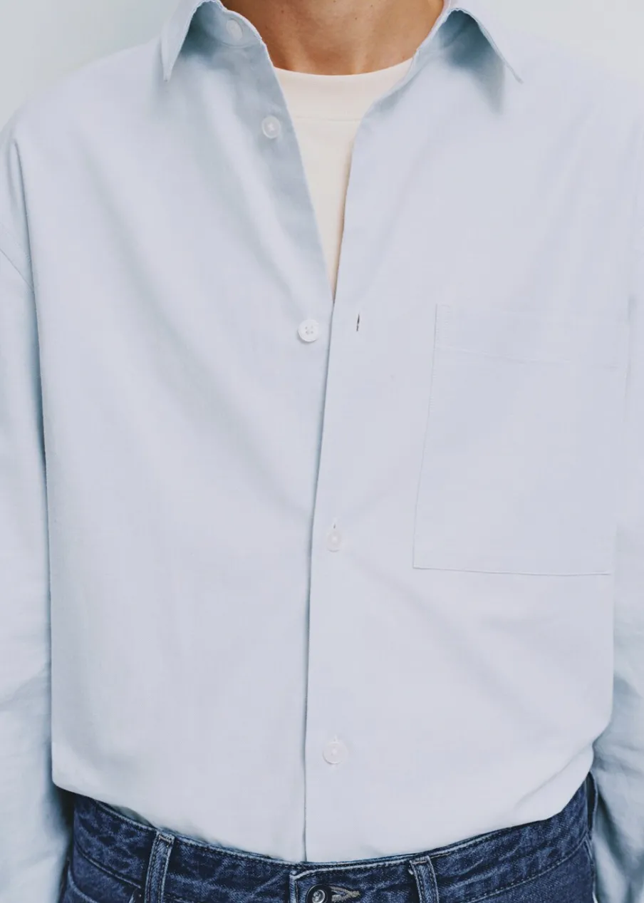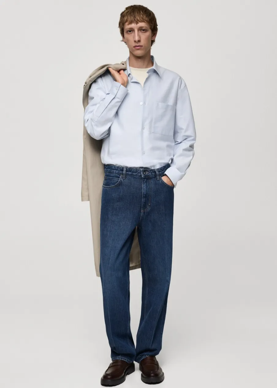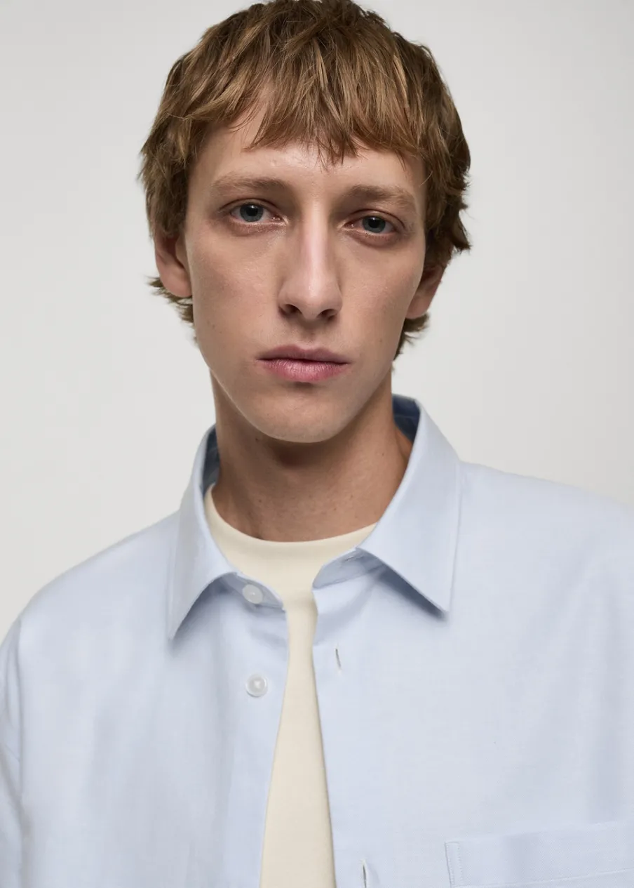 Bawełniana tkanina Oxford. Klasyczny kołnierzyk na guziki. Długi rękaw z guzikami na mankietach. Nakładana kieszeń przednia. Zapięcie na guziki. Model ma 190 cm wzrostu i nosi rozmiar M. Relaxed fit. Zaokrąglony dół.