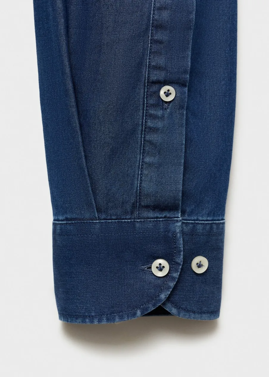 OpisSlim-fit. 100% bomull. Bawełniana tkanina chambray. Koszulowy kołnierz. Zapięcie na guziki. Zapinane mankiety….
