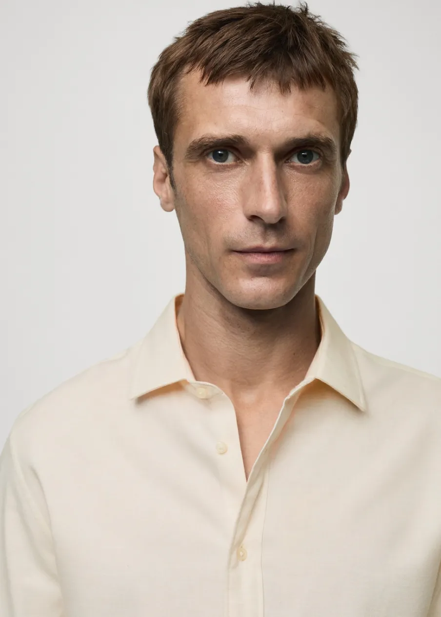 Tkanina z 100% bawełny. Tkanina flanelowa. Klasyczny kołnierzyk. Zapięcie na guziki. Zapinane mankiety. Slim-fit. Model ma 185 cm wzrostu i nosi rozmiar M. Zaokrąglony dół.