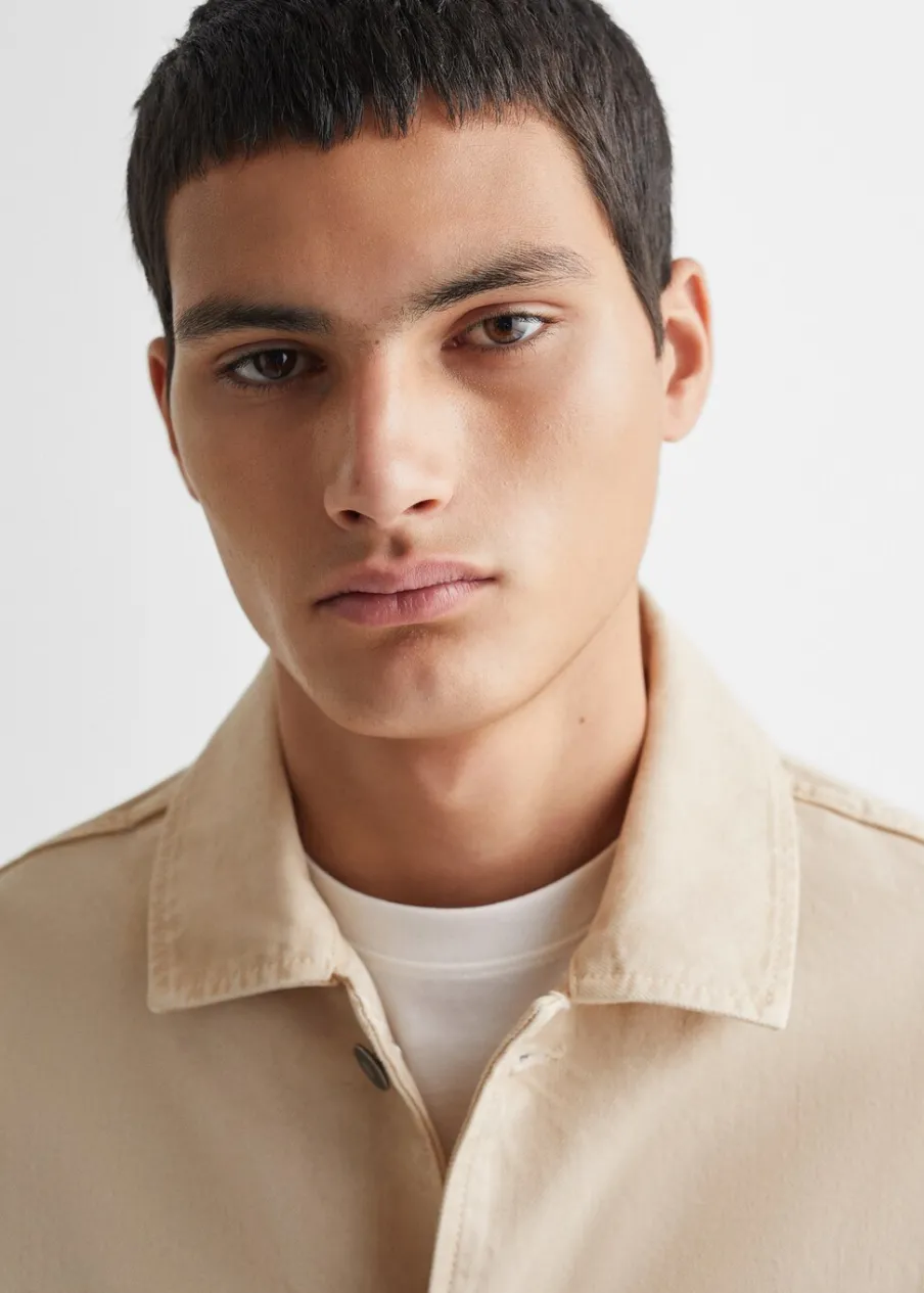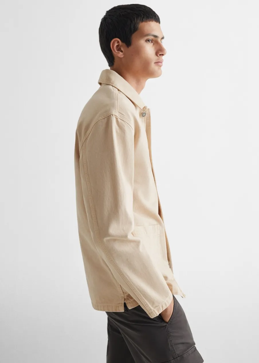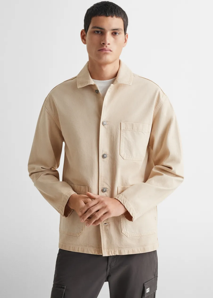 100% bomull. Model prosty. Trzy kieszenie z przodu. Koszulowy kołnierz. Długi rękaw. Zapięcie z przodu. Zapięcie na guziki. Powrót do szkoły.