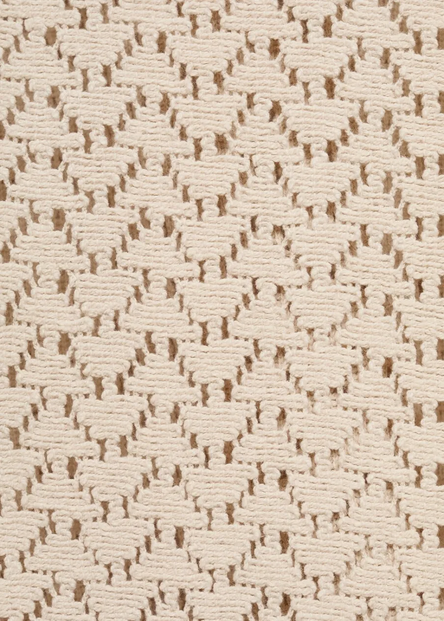 OpisKrój regular. Ażurowa dzianina. Koszulowy kołnierz. Krótki rękaw. Prosty dół. Dół z rozcięciem po bokach. …
