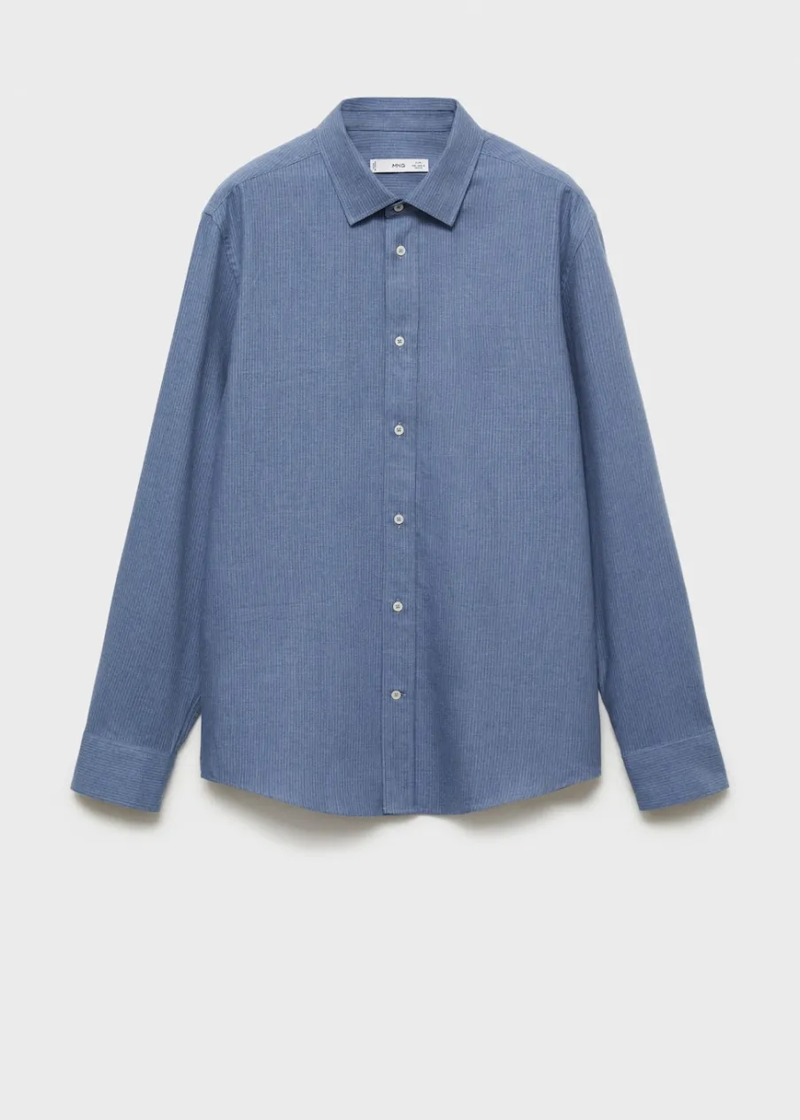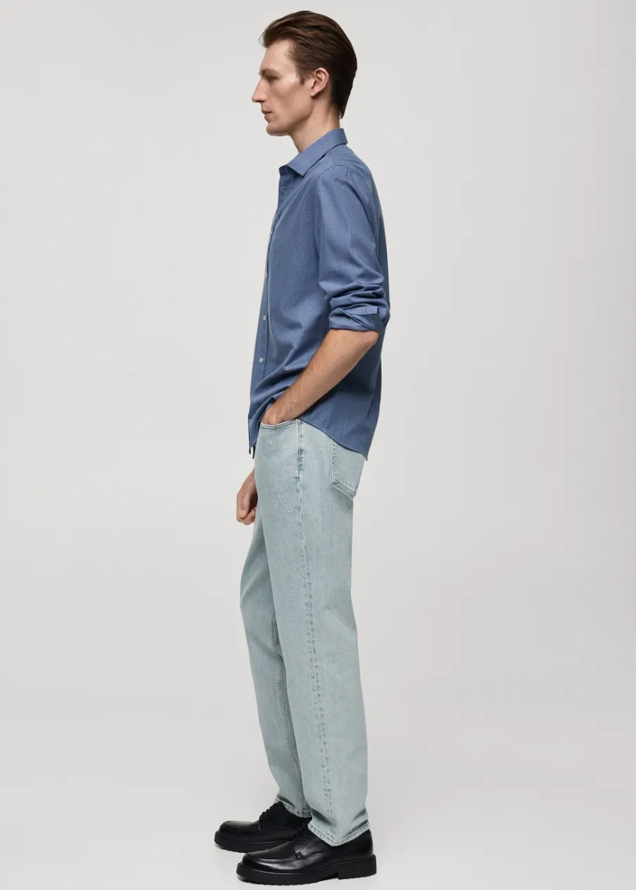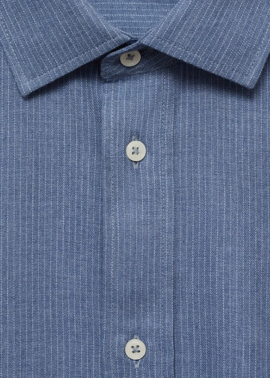 Bawełna 100%. Tkanina flanelowa. Wzór w drobne paseczki. Klasyczny kołnierzyk. Zapięcie na guziki. Zapinane mankiety. Zaokrąglony dół. Model ma 185 cm wzrostu i nosi rozmiar M. Slim-fit.