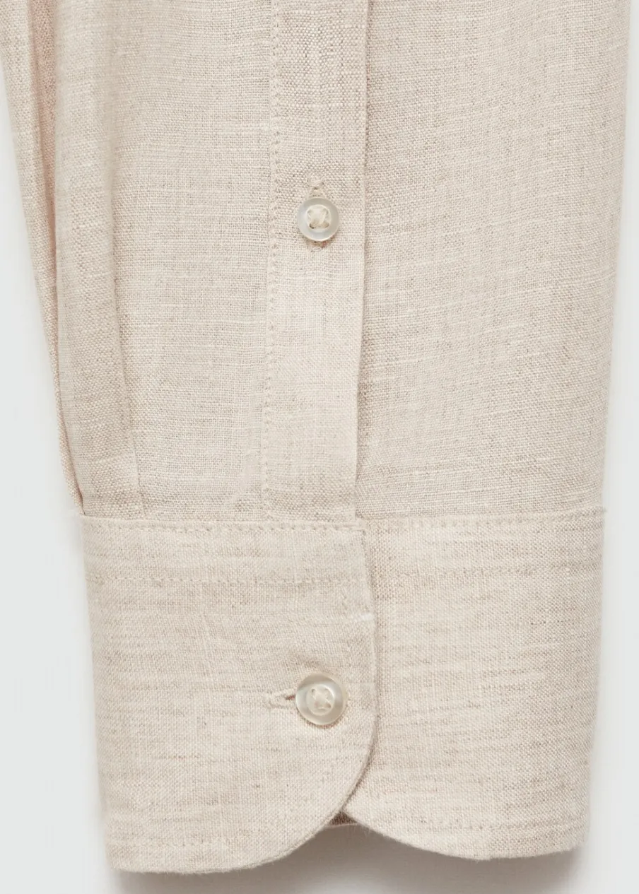 OpisTkanina z 100% lnu. Cienka tkanina. Stójkowy kołnierzyk. Zapięcie z przodu na guziki. Długi rękaw z guzikami na…