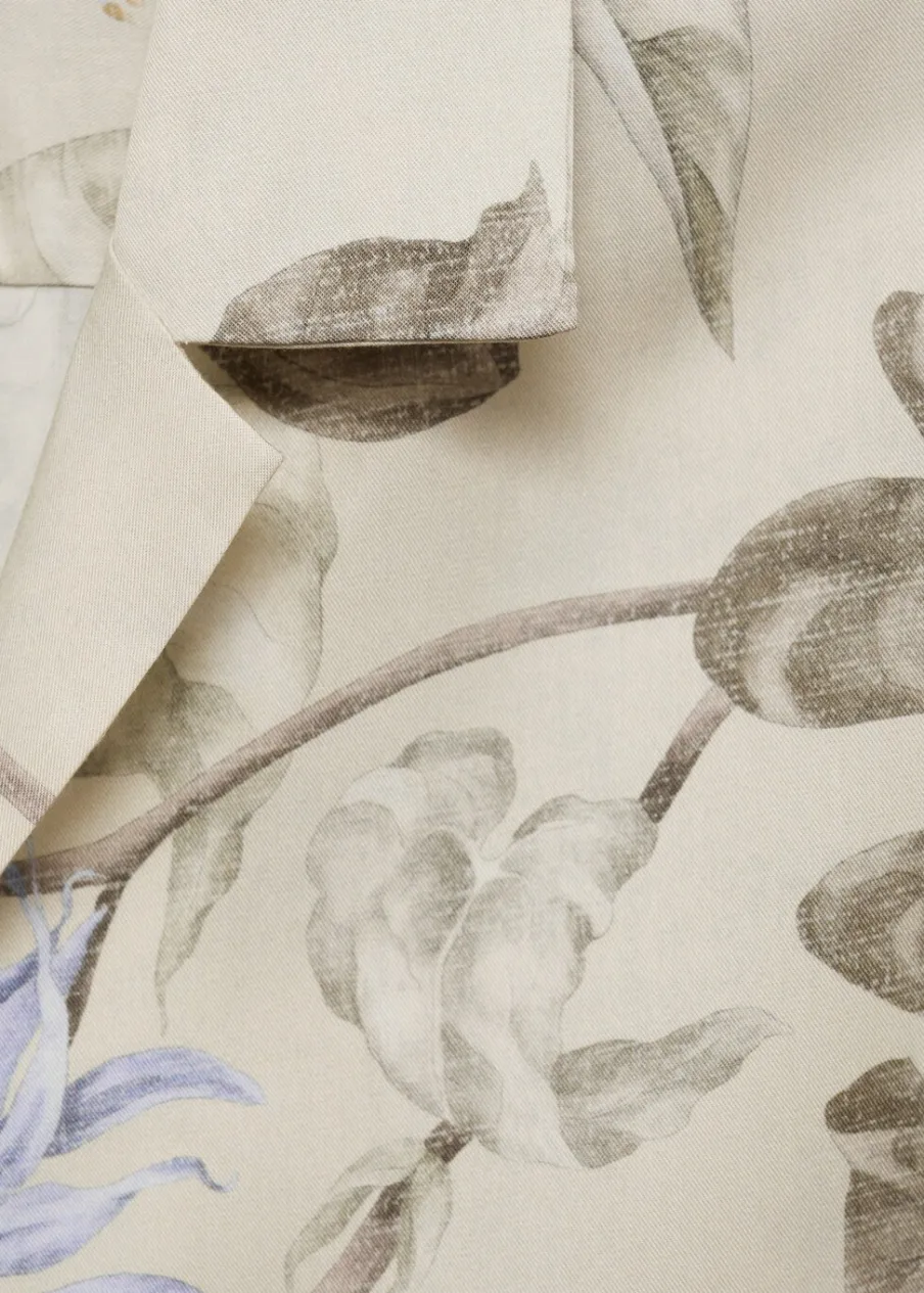 OpisKrój regular. Tkanina z 100% tencelu. Lejąca tkanina. Tropikalny wzór. Kołnierzyk typu bowling. Zapięcie z przo…