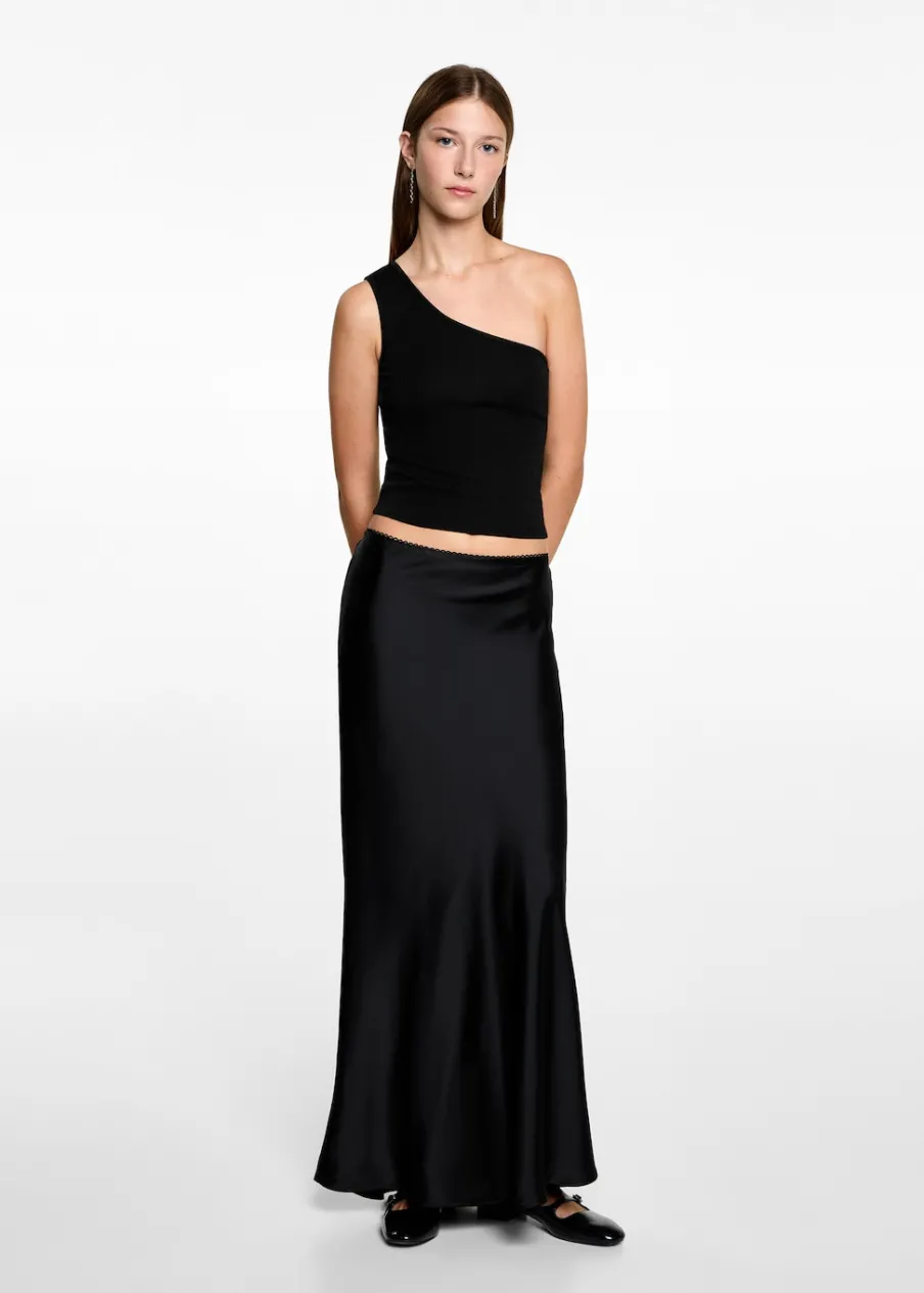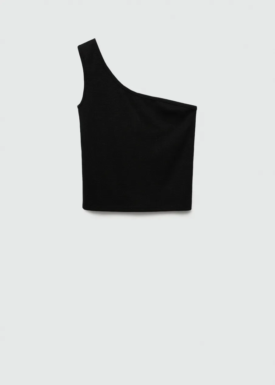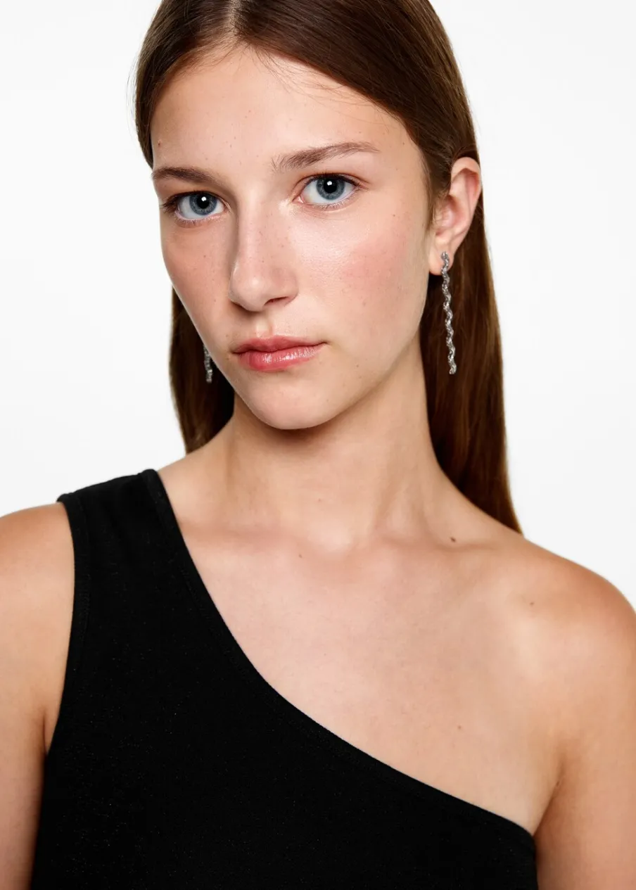 Kolekcja wieczorowa i imprezowa. Detal z lureksu. Asymetryczny krój. Deseń crop. Szerokie ramiączko. Modelka ma 172 cm wzrostu i nosi rozmiar M.
