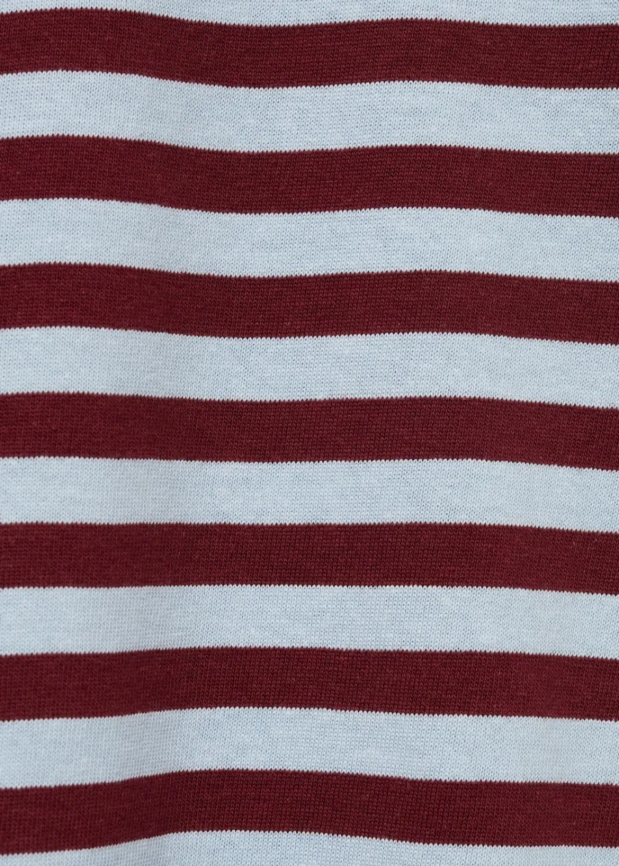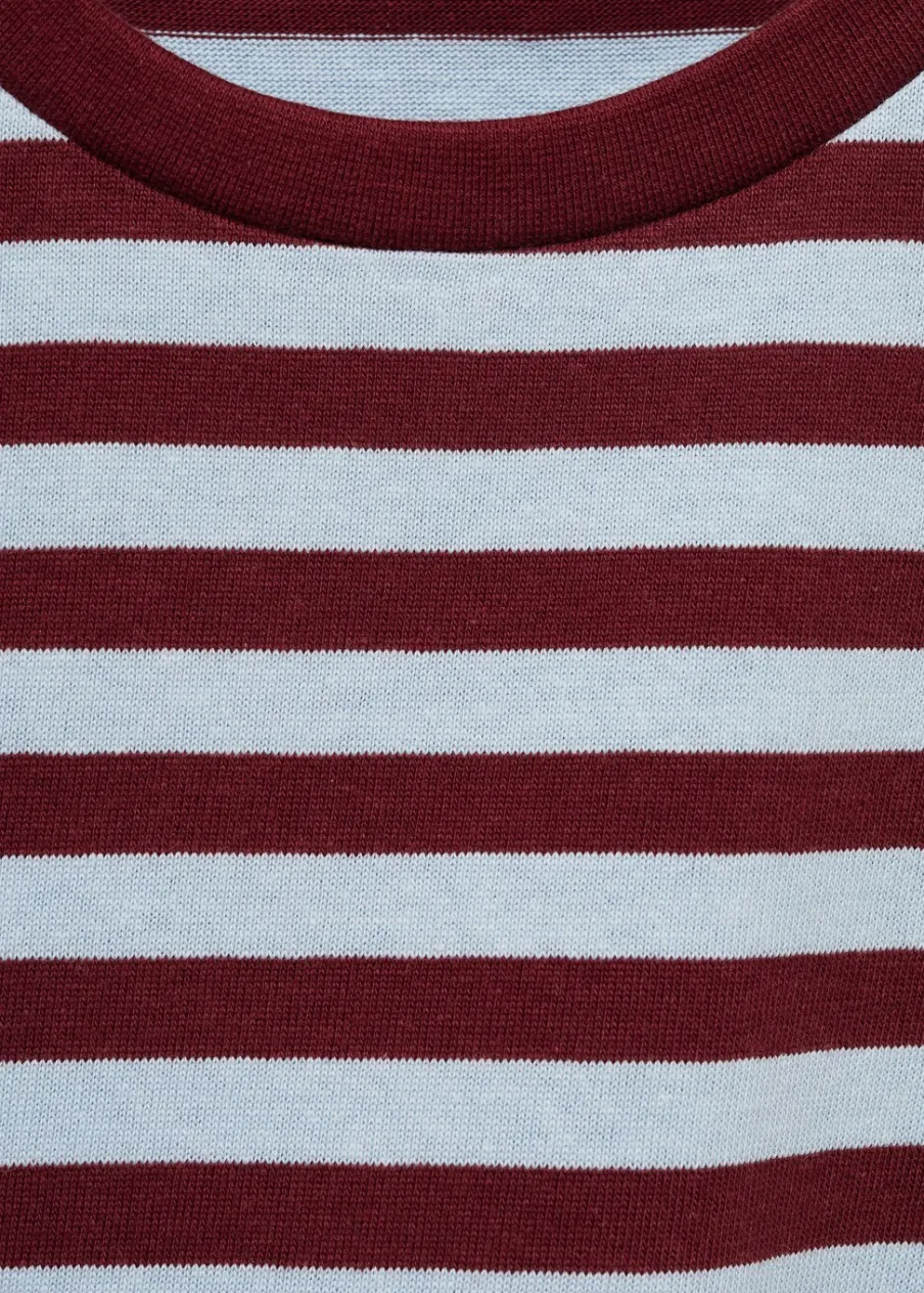 OpisModel prosty. Wzór w pasy. Okrągły dekolt. Krótki rękaw. Tkanina z 100% bawełny.