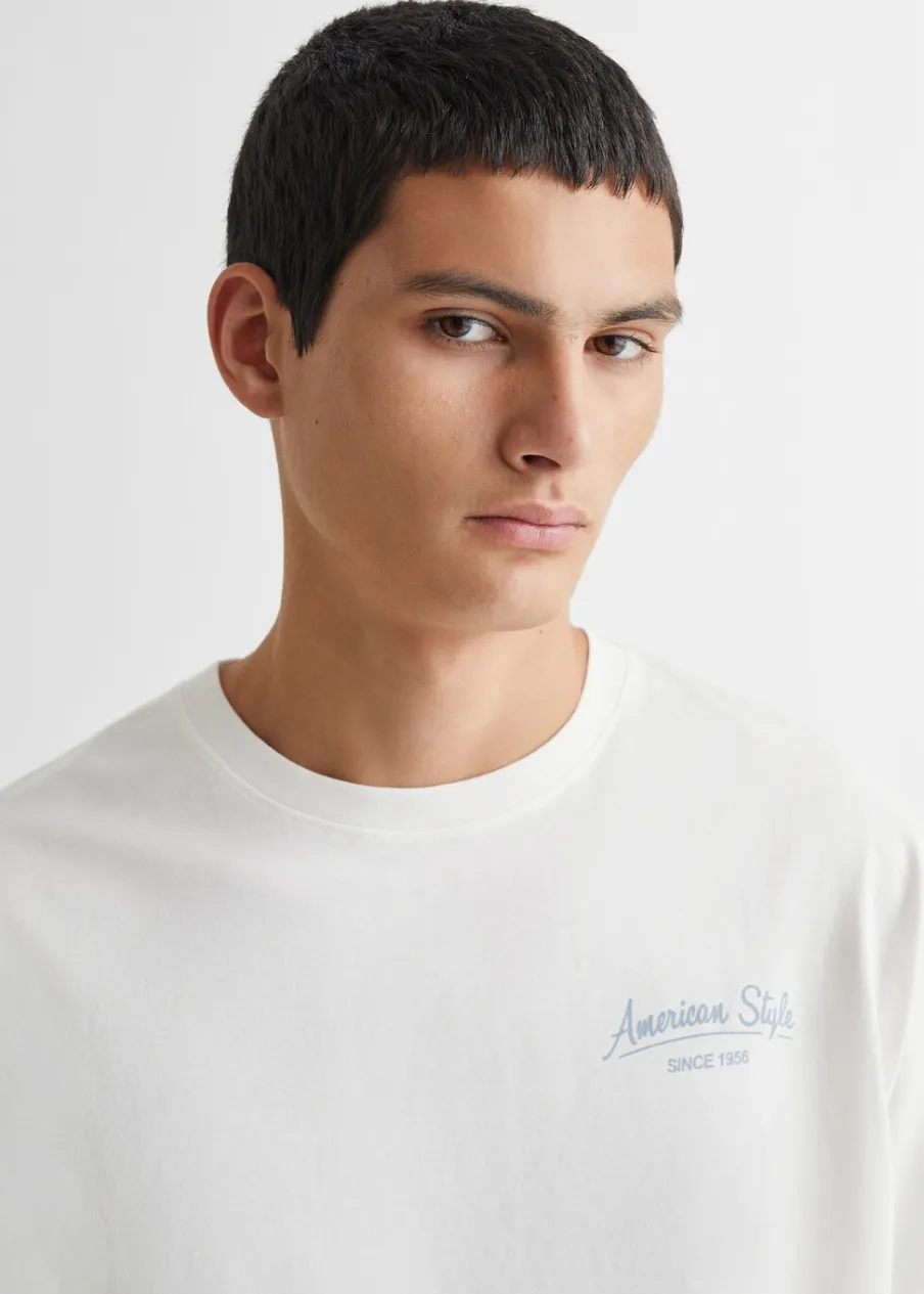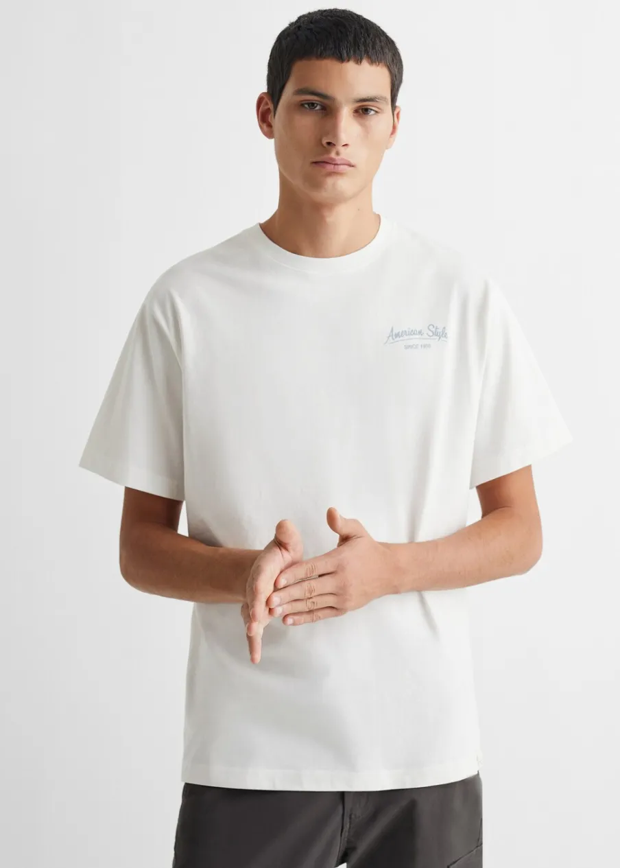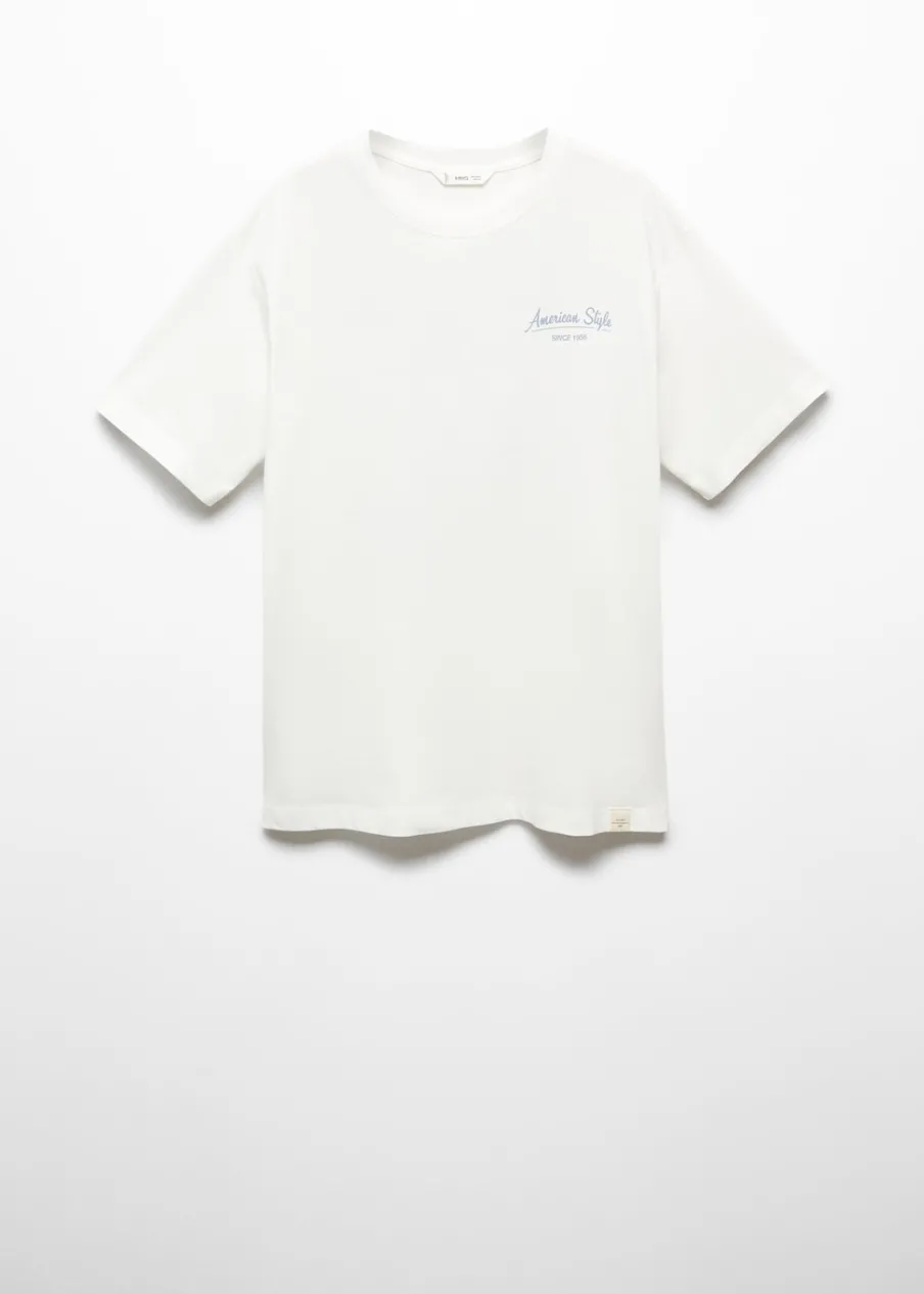 OpisBawełna 100%. Model prosty. Nadruk tekstu. Krótki rękaw. Okrągły dekolt.