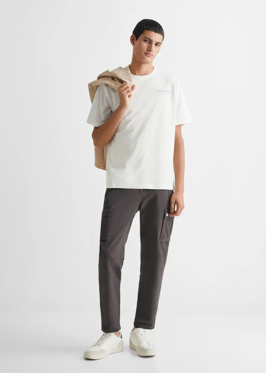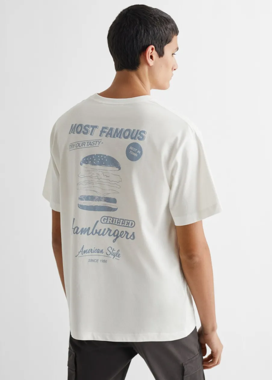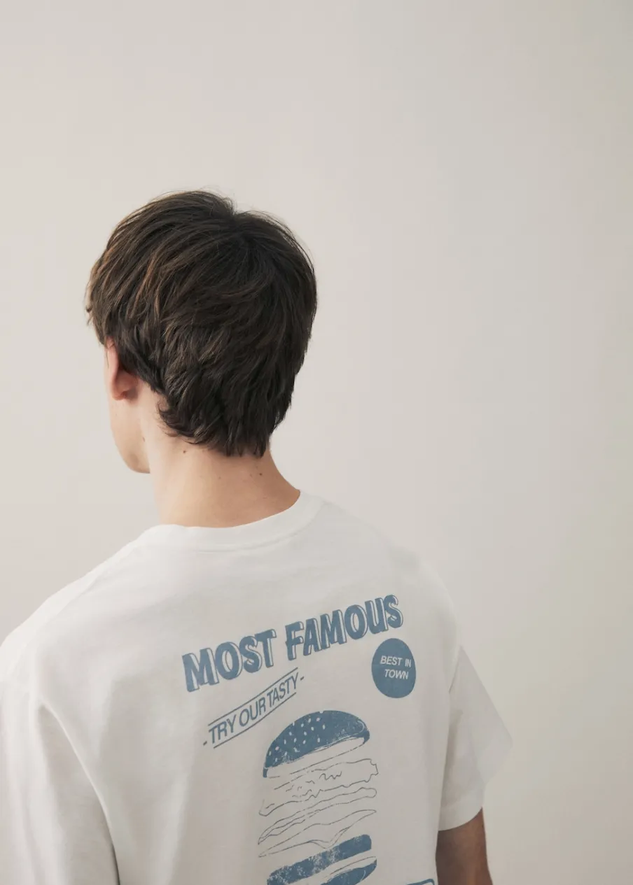 OpisBawełna 100%. Model prosty. Nadruk tekstu. Krótki rękaw. Okrągły dekolt.