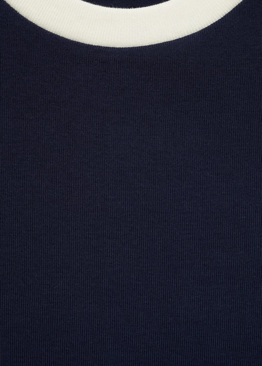 OpisWąski krój. Model dostępny w wersji gładkiej lub ze wzorem. Okrągły dekolt. Krótki rękaw. Kontrastowy detal….