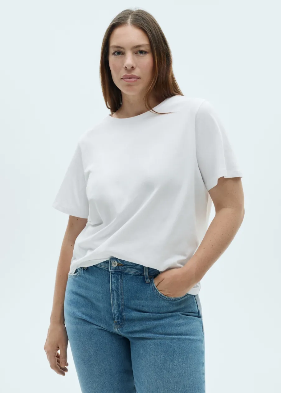 Tkanina z 100% bawełny. Cienka tkanina. Model prosty. Okrągły dekolt. Krótki rękaw. Bez zapięcia. Dostępne w Plus Size.