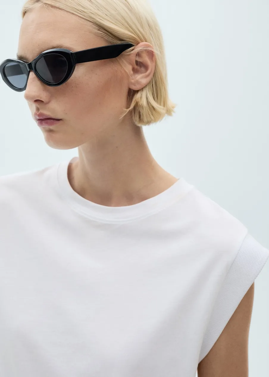 Model prosty. Okrągły dekolt. Krótki rękaw. Modelka ma 178 cm wzrostu i nosi rozmiar S/36. Modelka ma 179 cm wzrostu i nosi rozmiar S/36. Tkanina z 100% bawełny.