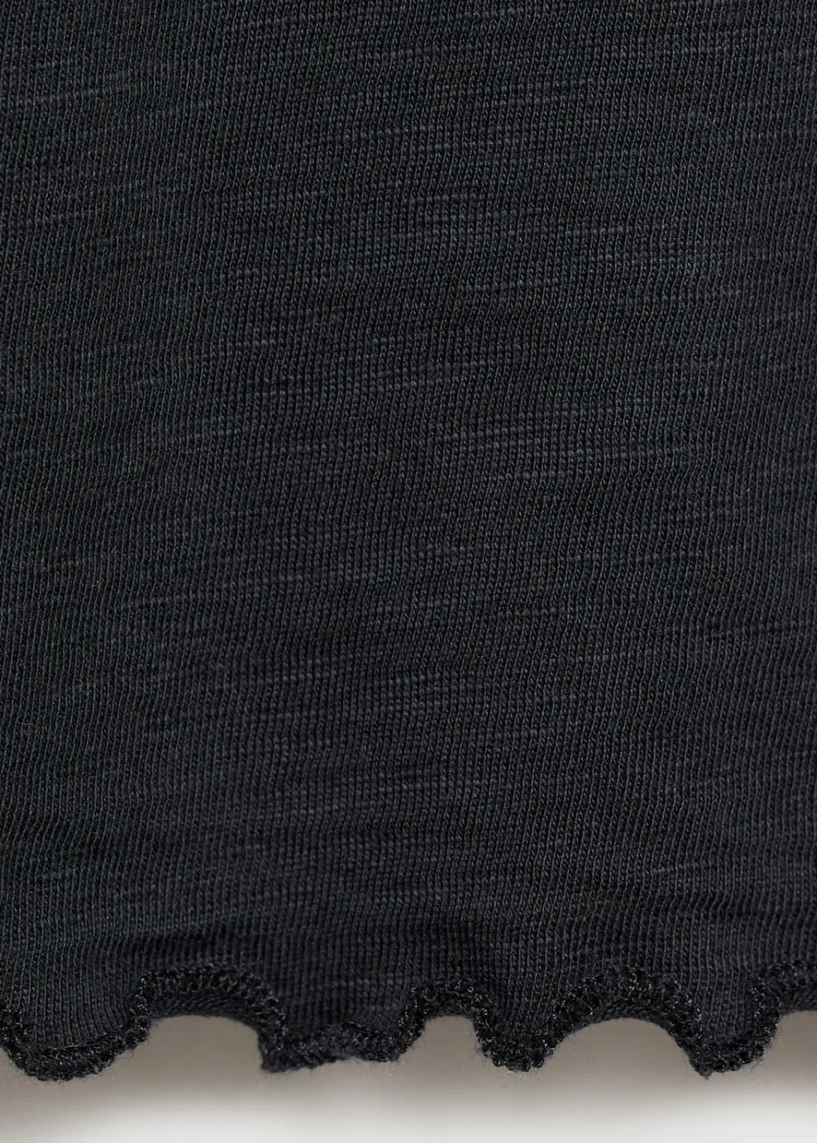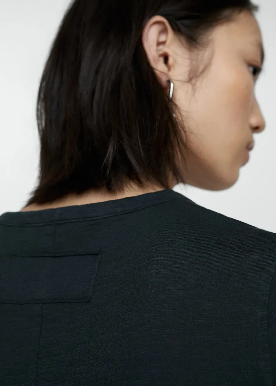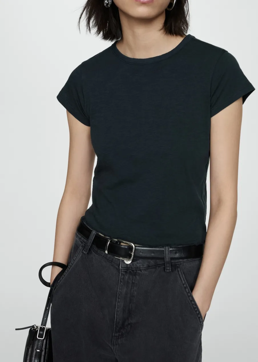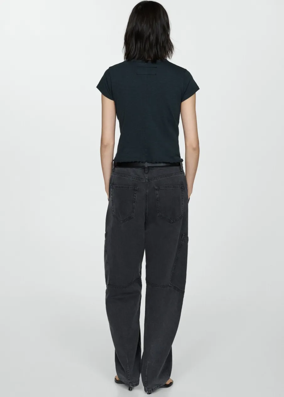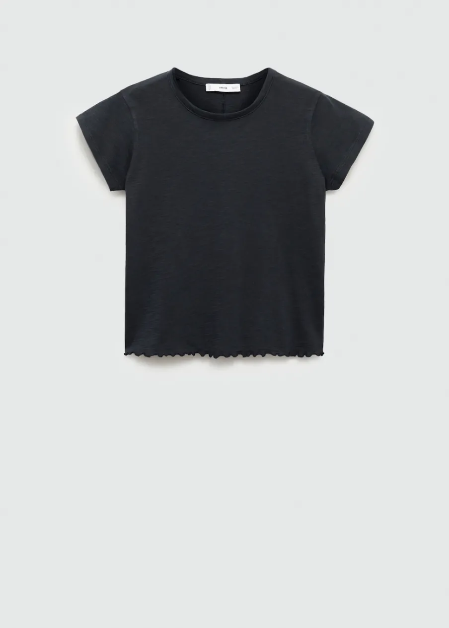 Model prosty. Deseń crop. Okrągły dekolt. Krótki rękaw. Stębnowane wykończenia. Bawełna prana. Tkanina z 100% bawełny.