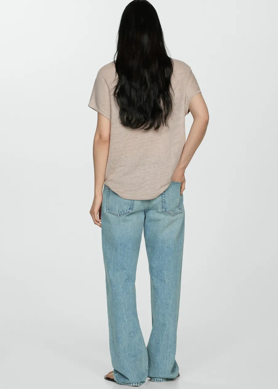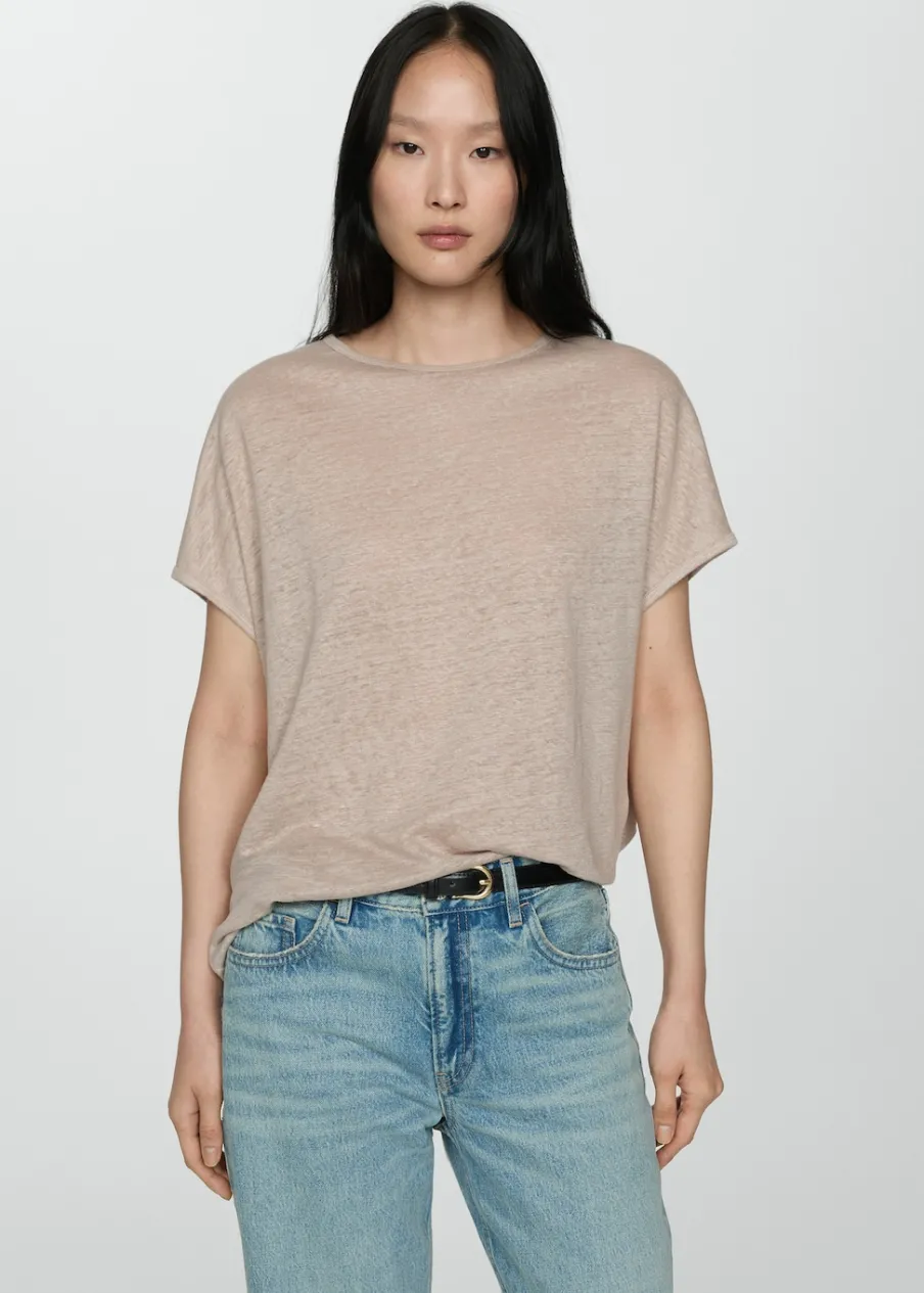 Tkanina z 100% lnu. Model prosty. Okrągły dekolt. Krótki rękaw.