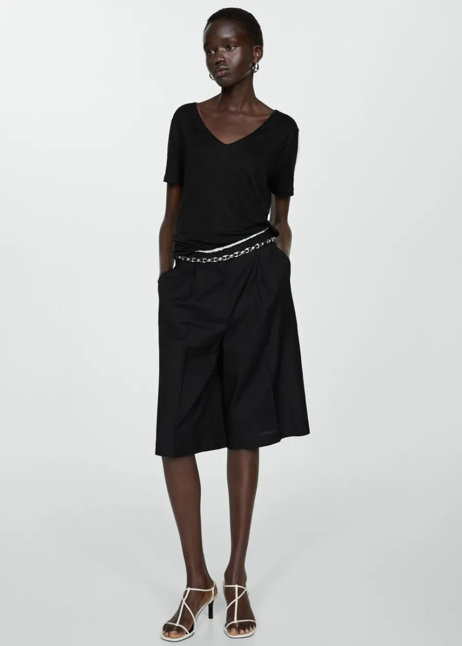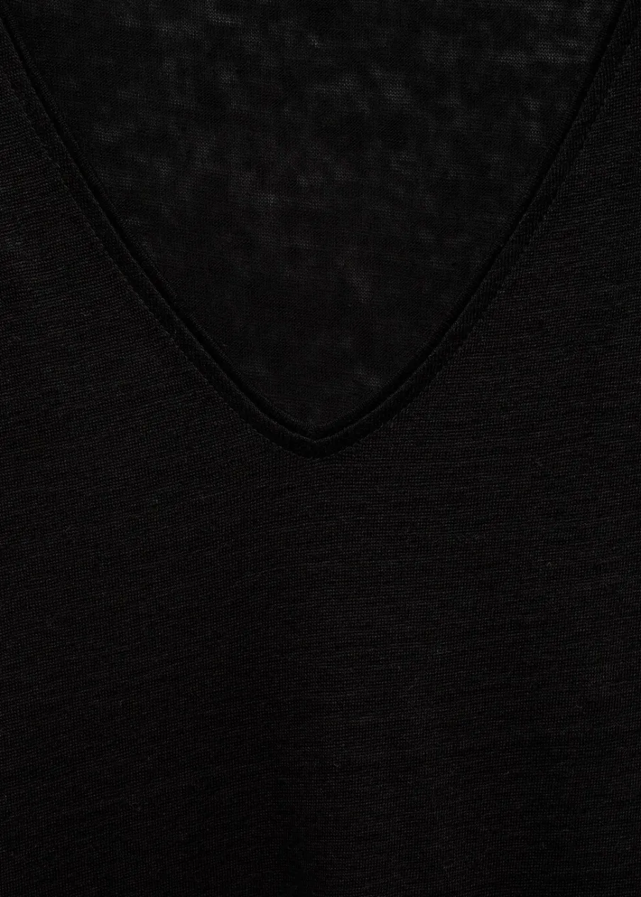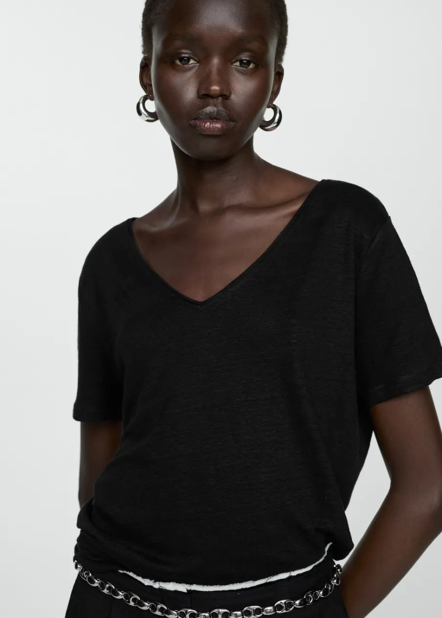 Tkanina z 100% lnu. Model prosty. Dekolt V. Krótki rękaw. Dostępne w Plus Size.
