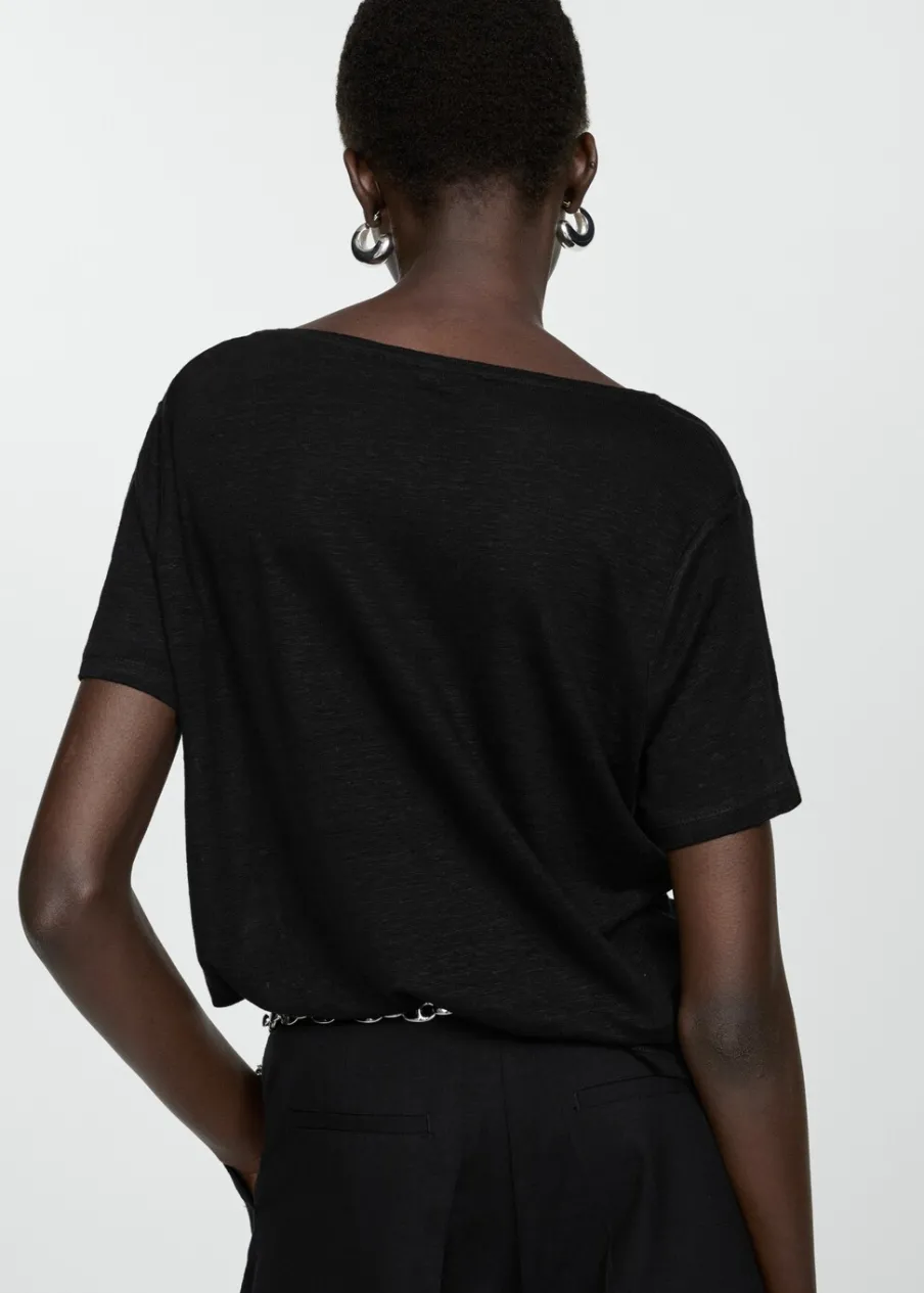 OpisTkanina z 100% lnu. Model prosty. Dekolt V. Krótki rękaw. Dostępne w Plus Size.