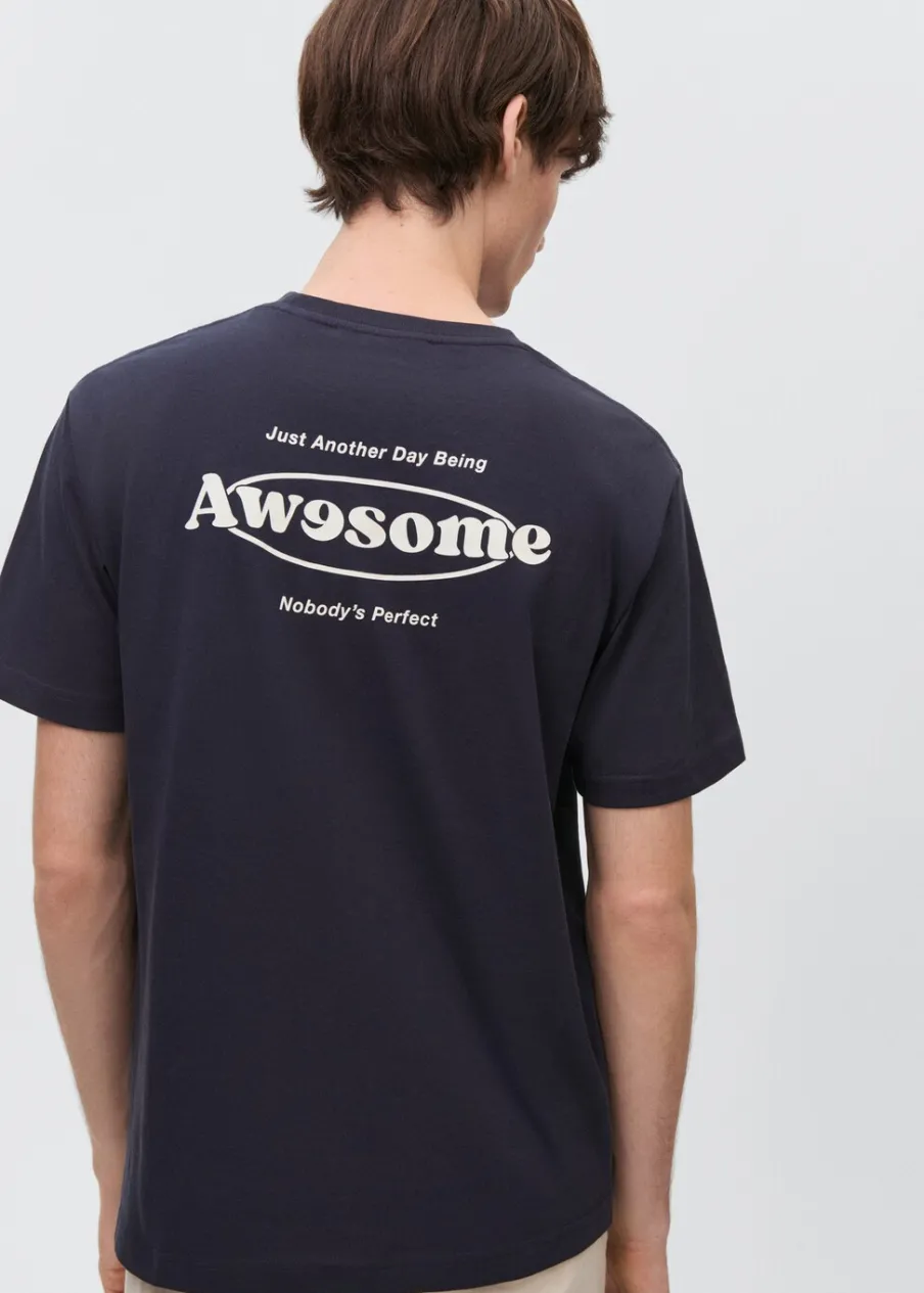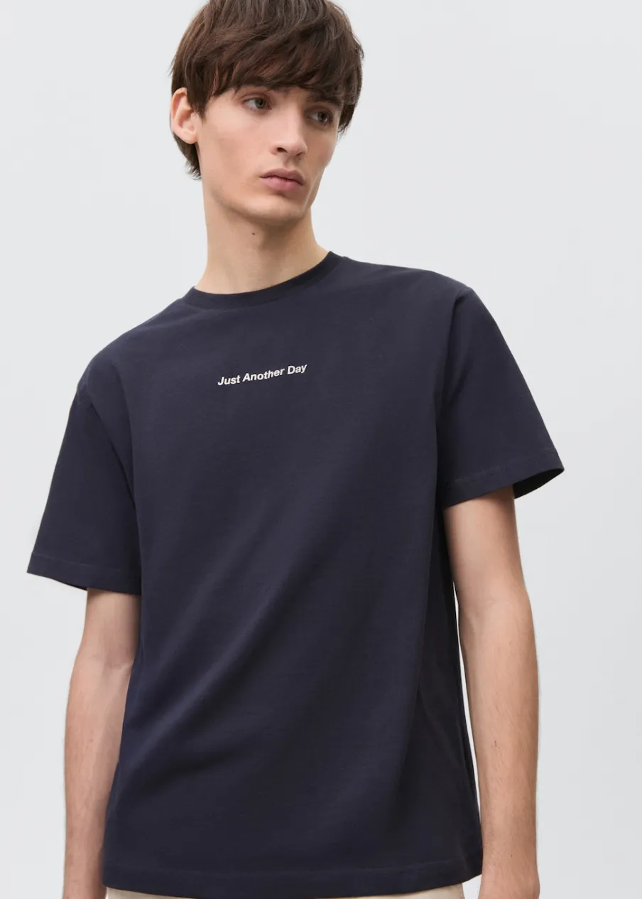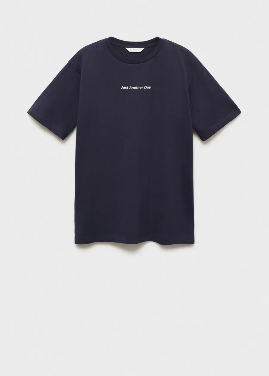 Bawełna 100%. Nadruk tekstu. Model oversize. Okrągły dekolt. Krótki rękaw.