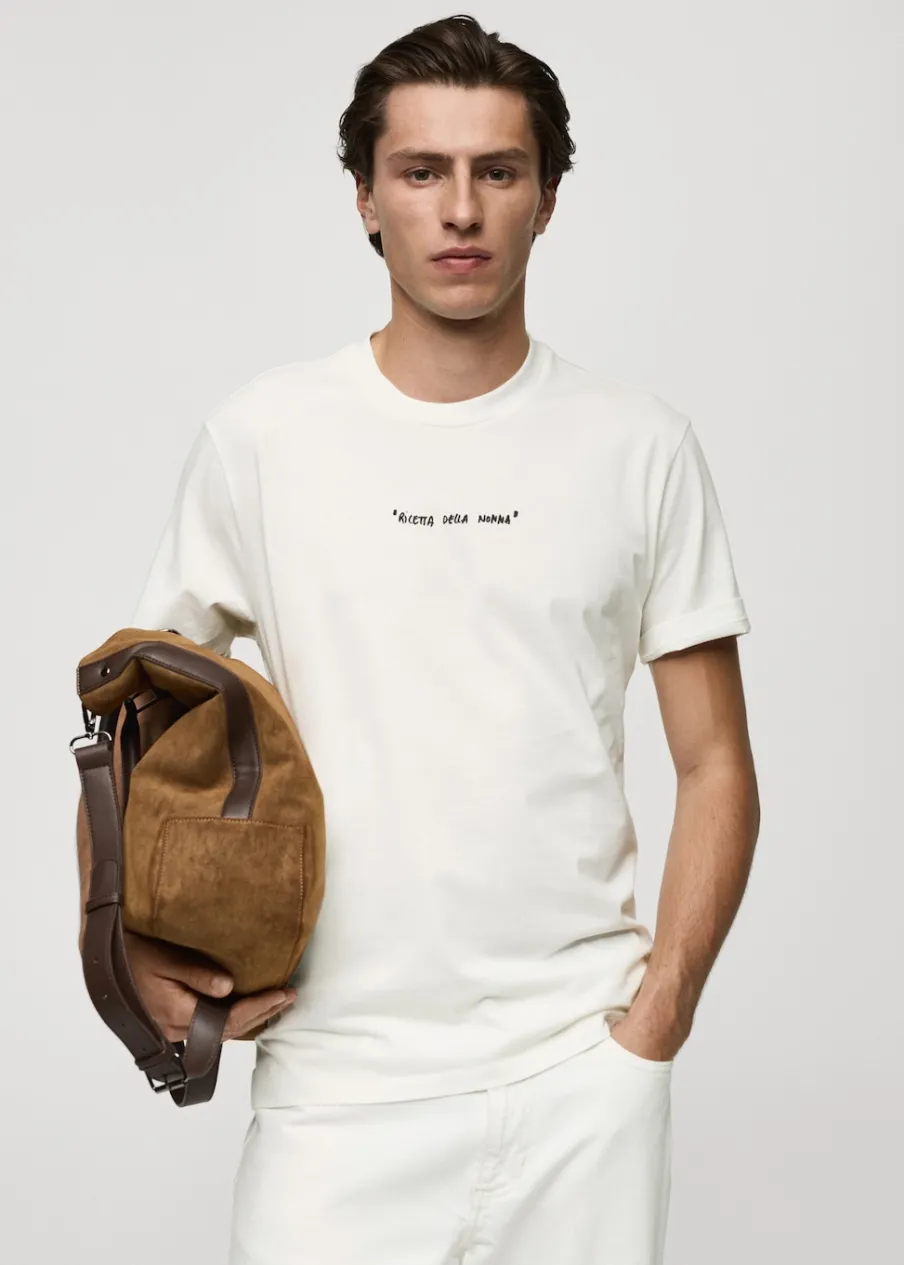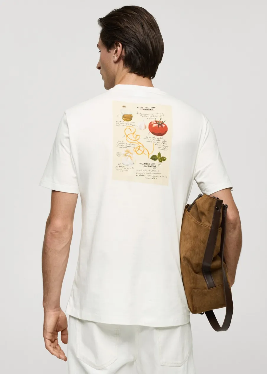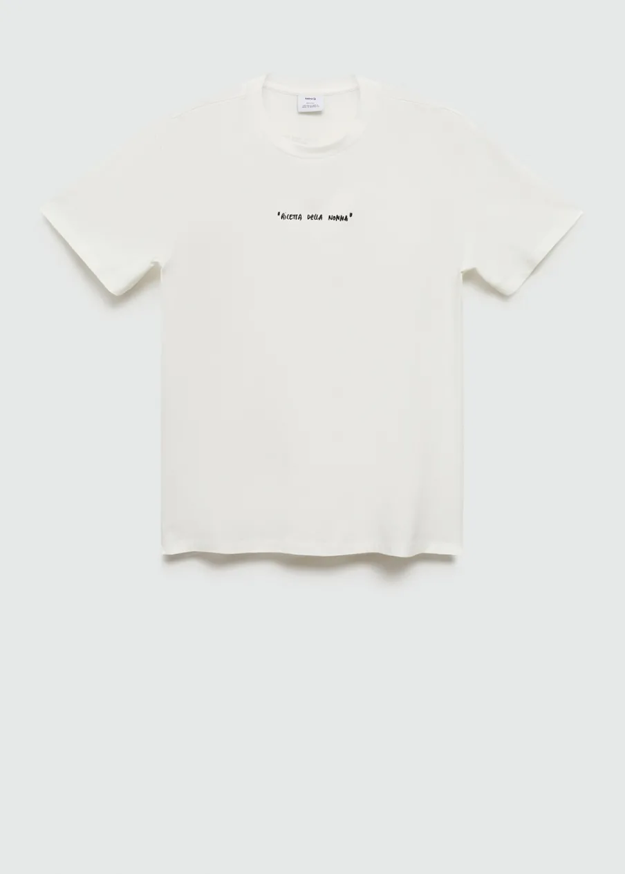 Krój regular. Wypukły napis nadrukowany na piersi. Okrągły dekolt. Krótki rękaw. Prosty dół. Model ma 187 cm wzrostu i nosi rozmiar M. Nadruk z tyłu. Tkanina z 100% bawełny.