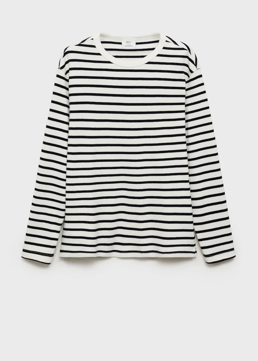 OpisKrój regular. 100% bomull. Wzór w paski. Długi rękaw. Okrągły dekolt. Model ma 185 cm wzrostu i nosi rozmia…