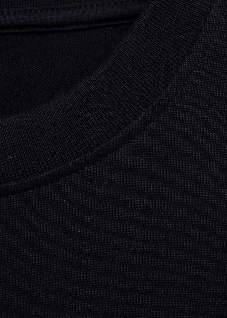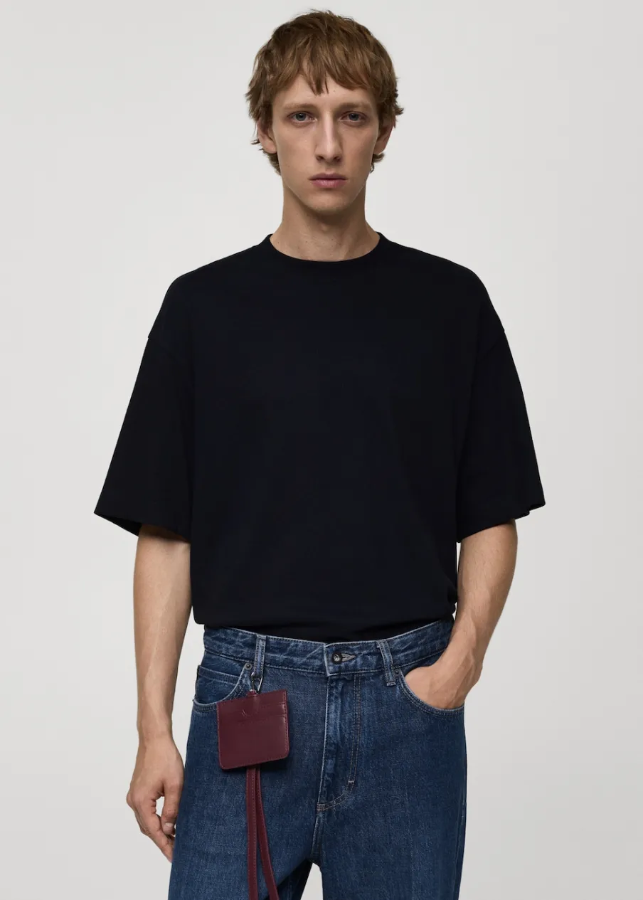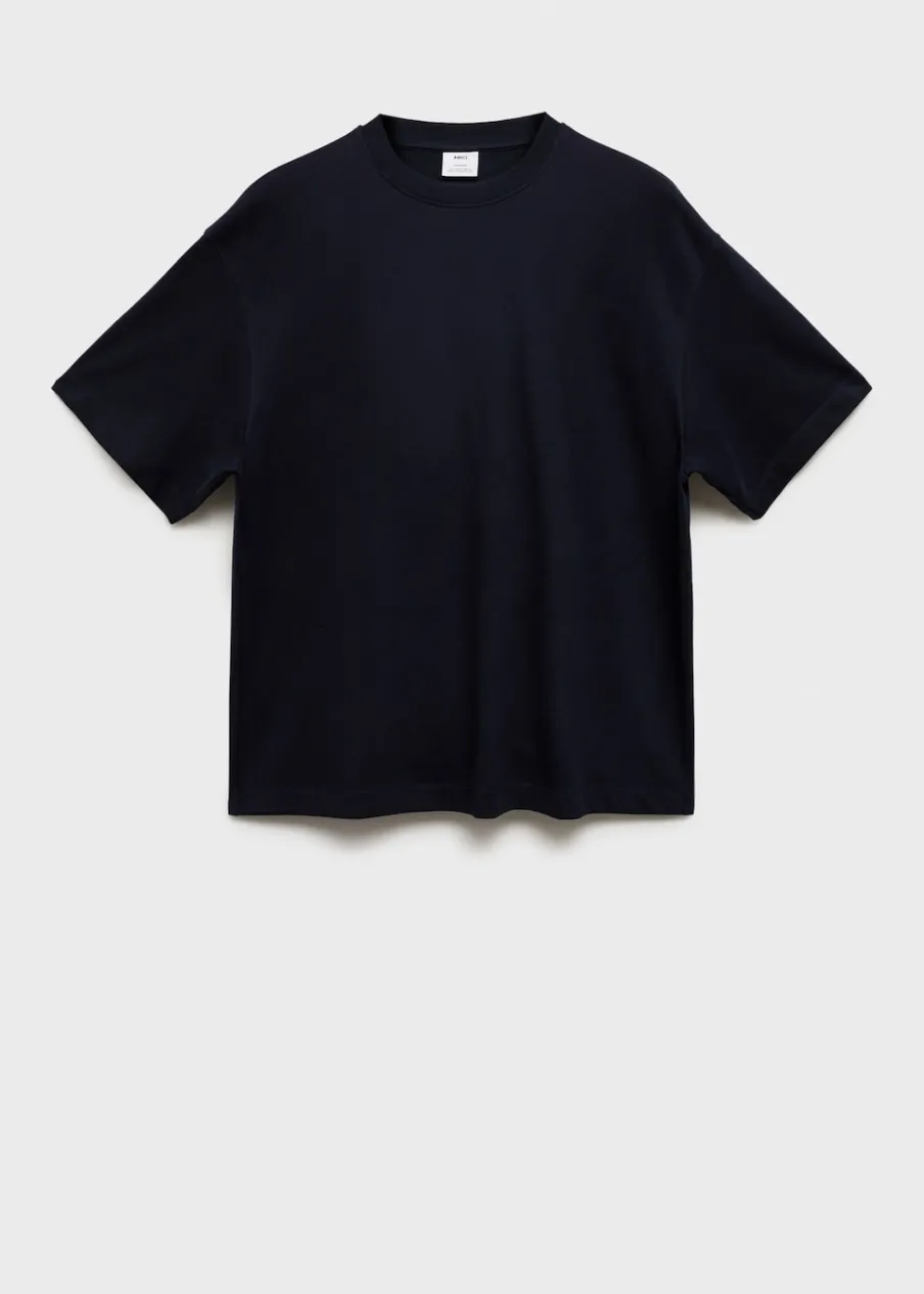 Model oversize. Okrągły dekolt. Krótki rękaw. Prosty dół. Model ma 190 cm wzrostu i nosi rozmiar M. Tkanina z 100% bawełny.