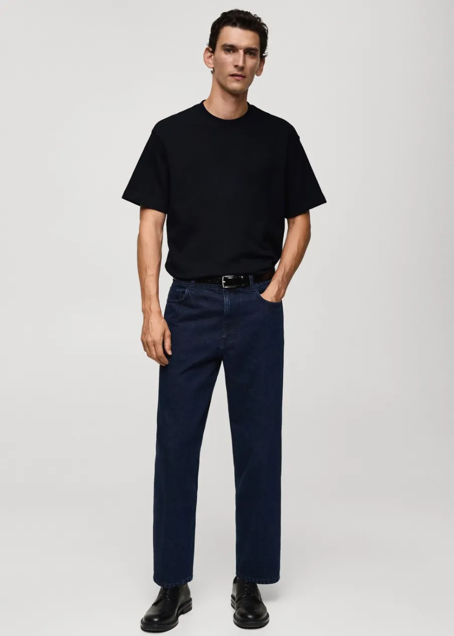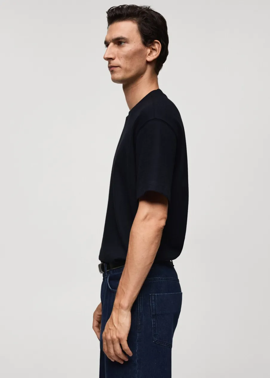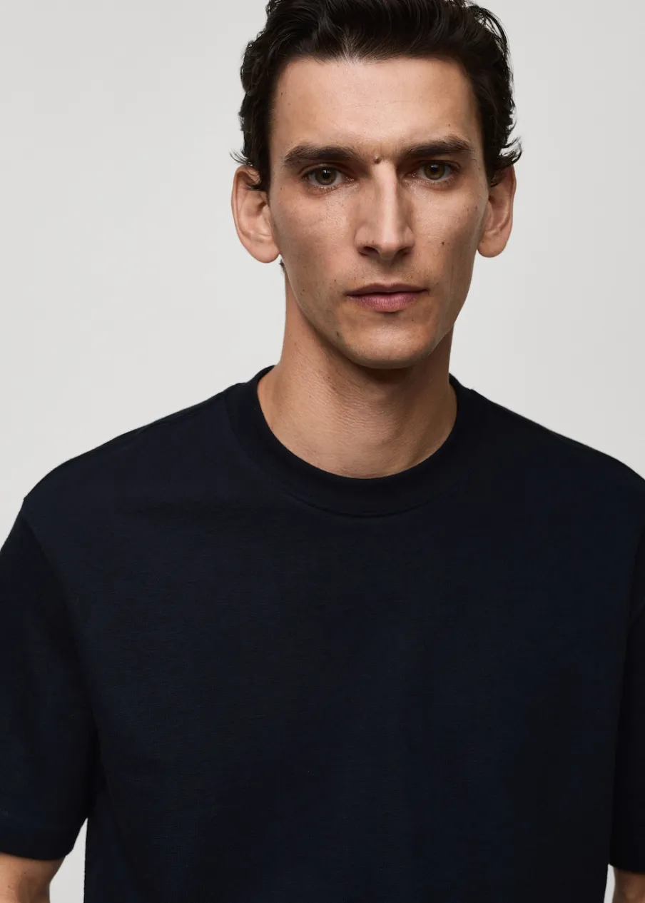 Relaxed fit: prosty i luźny fason zapewniający komfort noszenia. Teksturowana tkanina. Okrągły dekolt. Krótki rękaw. Prosty dół. Model ma 190 cm wzrostu i nosi rozmiar M. Tkanina z 100% bawełny.