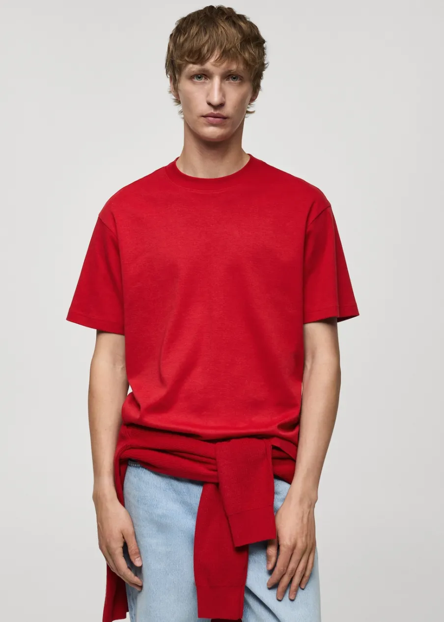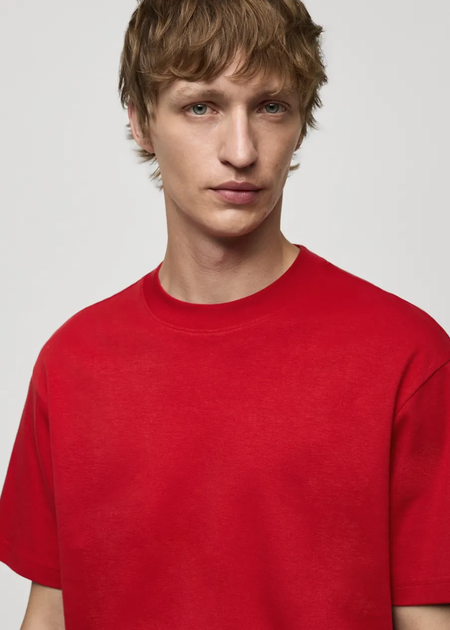 Relaxed fit: prosty i luźny fason zapewniający komfort noszenia. Okrągły dekolt z prążkowanym wykończeniem. Krótki rękaw. Prosty dół. Model ma 190 cm wzrostu i nosi rozmiar M. Tkanina z 100% bawełny.