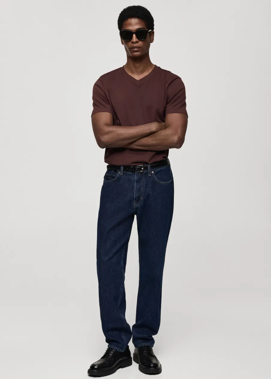 Kolory piaskowy i bordowy są dostępne tylko online. 100% bomull. Slim-fit. Dekolt V. Krótki rękaw. Model ma 185 cm wzrostu i nosi rozmiar M.